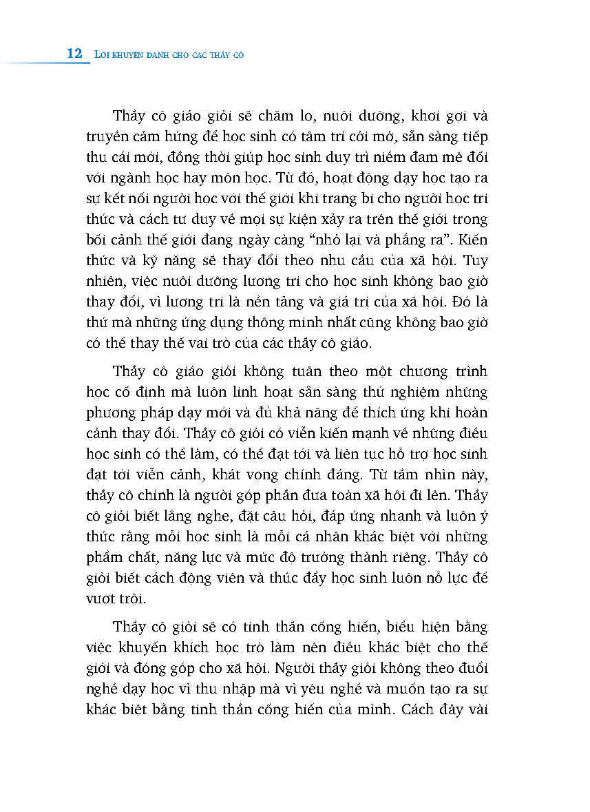 Lời Khuyên Dành Cho Thầy CôThầy cô là người có ảnh hưởng trực tiếp đến sự phát triển của quốc gia và nhân cách của thế hệ tương lai.Ngày nay, môi trường giáo dục đã có nhiều thay đổi. Thầy cô giáo kh...