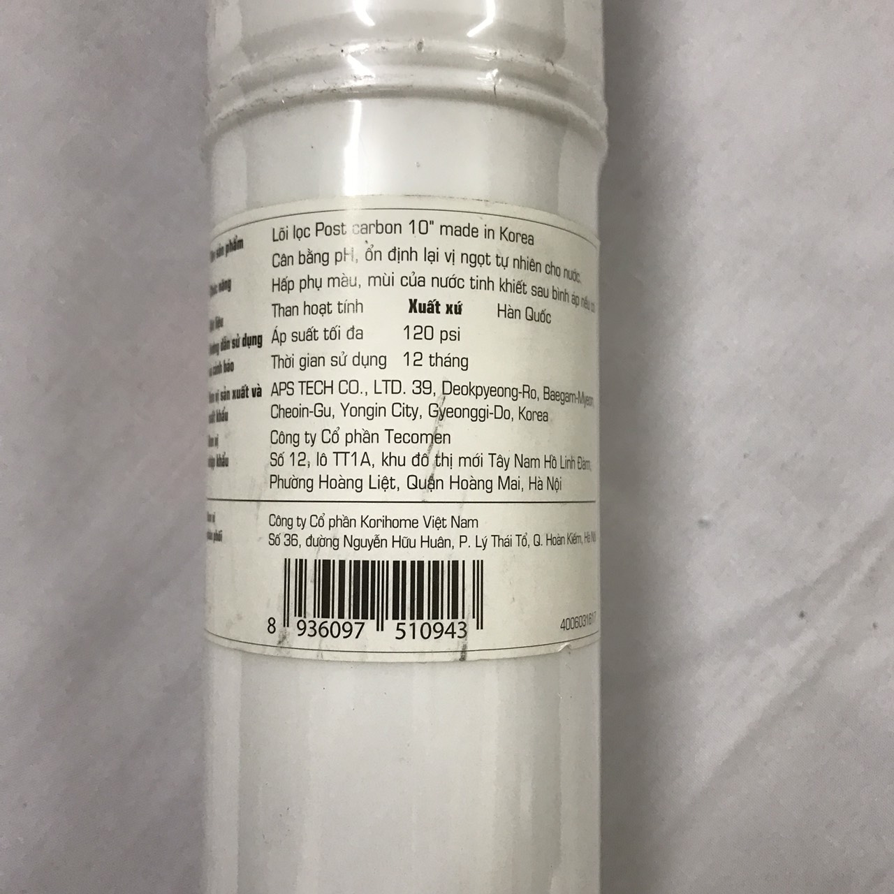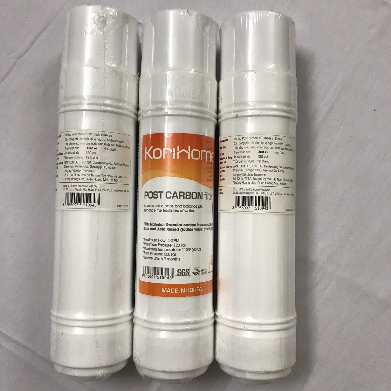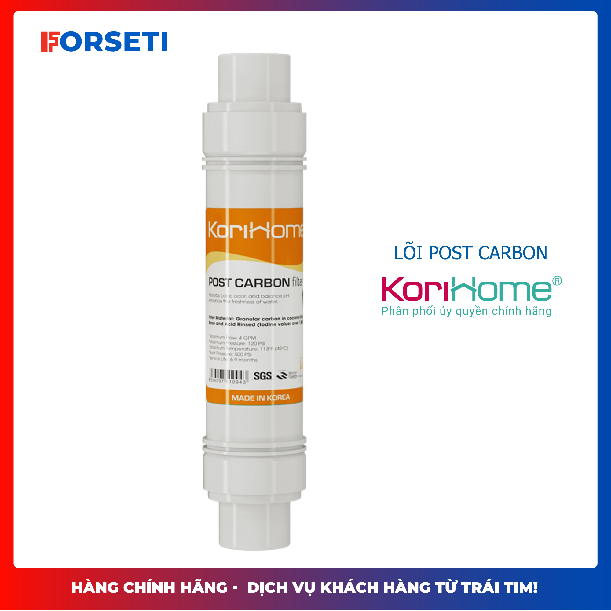 Mua tại TiktokThông tin sản phẩm Thương hiệu: Korihome Xuất xứ: Hàn Quốc Bảo hành theo chính sách của NSX Lõi số 4 - Lõi Post Carbon Korihome -Cấu tạo bằng vỏ nhựa đúc nguyên khối, bên trong chứa than hoạt tính làm từ gáo dừa. -Tác dụng: + Giúp loại bỏ các hạt, tạp chất bẩn trong nước khi điqua lõi lọc nhờ các lỗ nhỏ li ti trong cấu trúc than. +Loại bỏ mùi clo(qua cơ chế lọc hút bám, hấp phụ ) trong nước cũng như tạo vị ngọt tự nhiên cho nước đầu ra. -Xuất xứ: Hàn Quốc -Thời gian thay lõi: Thay sau 12 tháng khoảng 10.000 lít nước(tùy thuộc nhu cầu sử dụng hàng ngày).