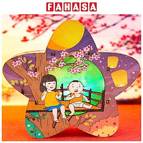 Lồng Đèn Trung Thu Gỗ Mộc Màu : Đèn Chị Em - Bách Mộc 10 (Có Kèm Pin) Đèn trung thu được làm từ chất liệu gỗ cứng cáp, thiết kế dễ thương tạo nên