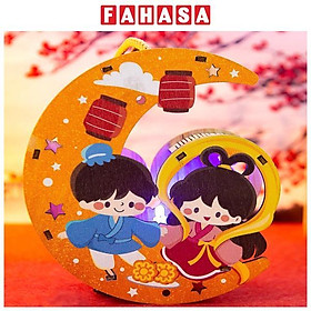 Lồng Đèn Trung Thu Gỗ Mộc Màu : Đèn Trăng - Bách Mộc 03 (Có Kèm Pin) Đèn trung thu được làm từ chất liệu gỗ cứng cáp, thiết kế dễ thương tạo nên sự