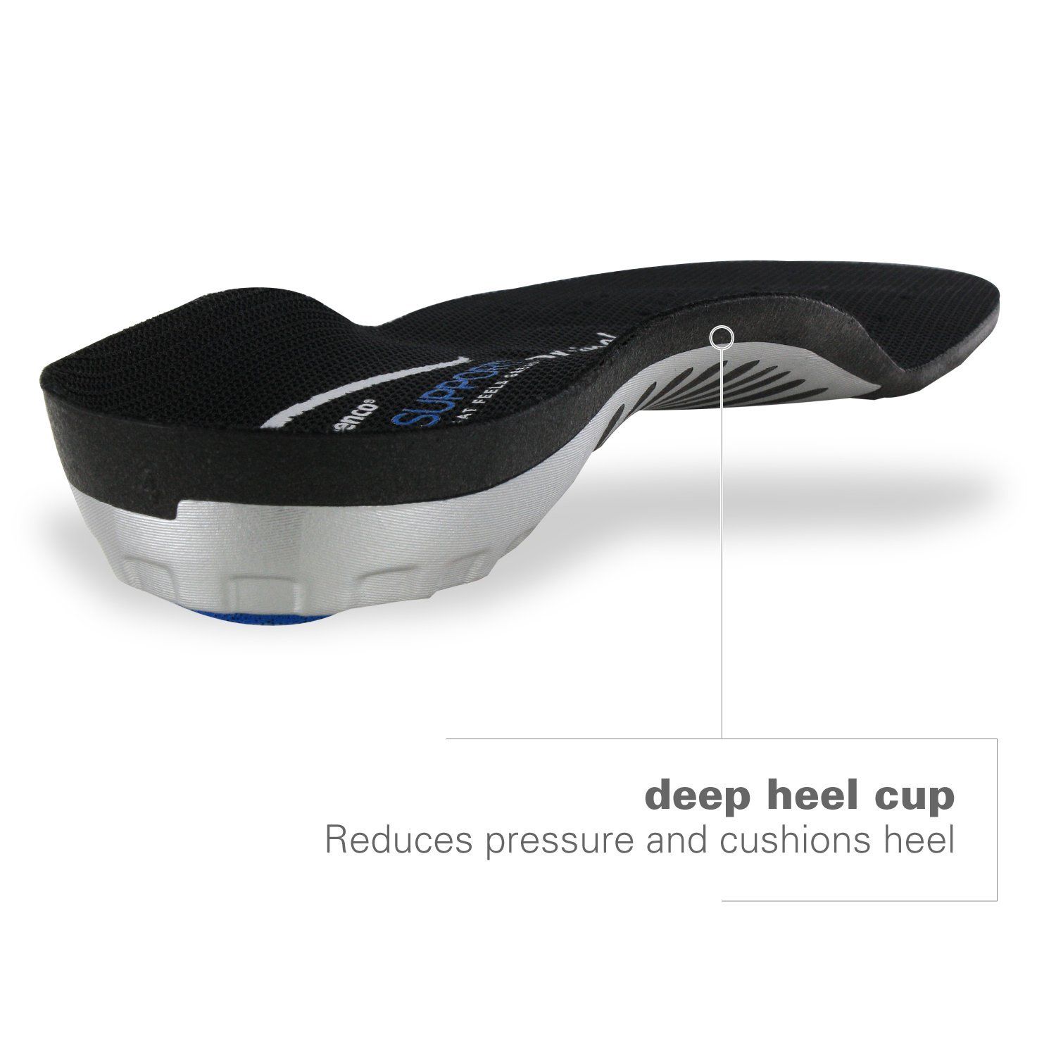 Lót giày giảm đau mỏi chân đạt tiêu chuẩn y khoa Mỹ Spenco Total Support Original gúp hỗ trợ chức năng cơ học bàn chân, với thiết kế cấu trúc Total Support giúp hấp thụ lực tác động tối ưu, hỗ trợ chỉnh hình cấu trúc xương vòm bàn chân, giúp gân và dây chằng khỏi sự đau đớn do áp lực quá tải, làm giảm căng thẳng ở bàn chân chuyển trọng lượng xuống đất một cách hiệu quả.