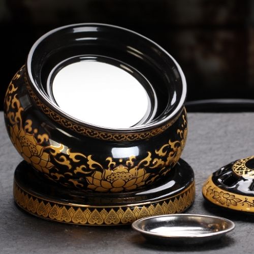 -Lư xông trầm bằng gốm có tấm lót chống nóng , chống ố vàng đáy lư , lư hương sứ kèm đế cắm được tất cả các loại nhang , giúp tạo ra bầu không