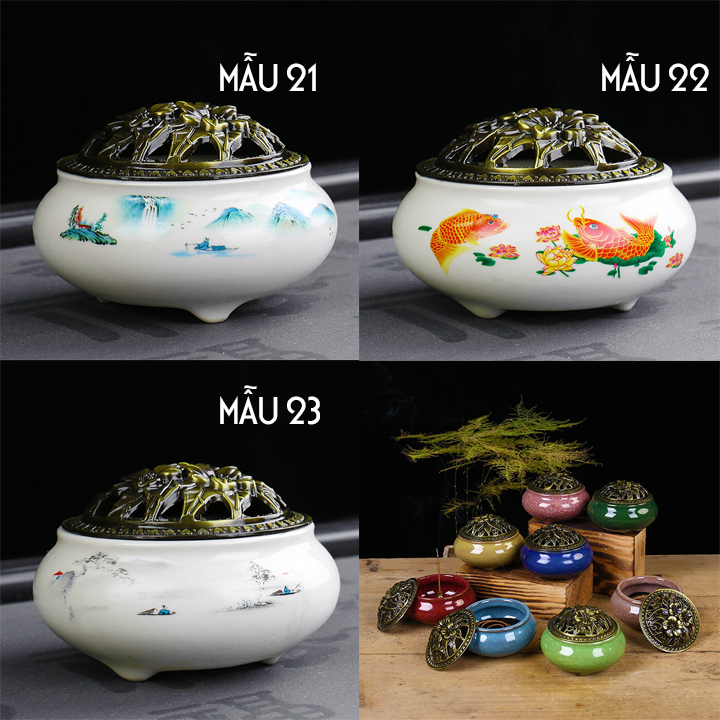 Lư Đốt Trầm Hương gốm sứ - đa dạng mẫu & màu sắc Giới thiệu sản phẩm Lư Đốt Trầm Hương Chất liệu lư đốt trầm hương: Sứ Men Công dụng Lư Đốt Trầm Hương: Đem lại