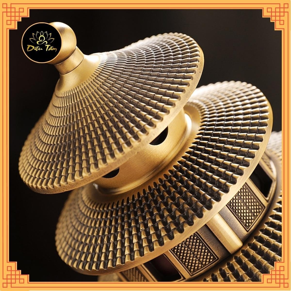 Lư xông trầm đồ thờ cúng bằng đồng hình bảo tháp sơn màu đồng vàng phụ kiện trang trí ban thờ, bàn làm việc