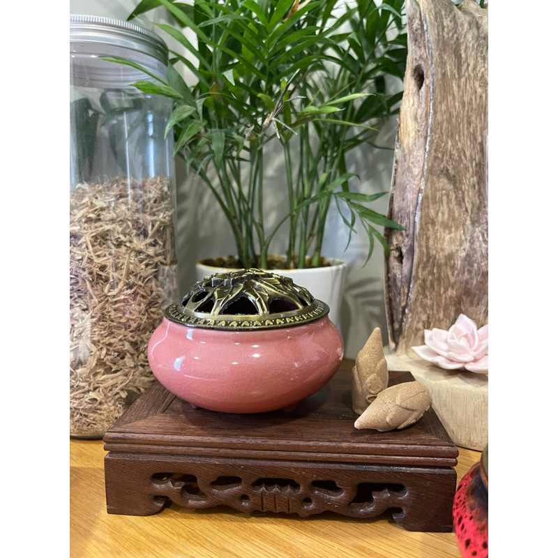 -Lư xông trầm bằng gốm có tấm lót chống nóng , chống ố vàng đáy lư , lư hương sứ kèm đế cắm được tất cả các loại nhang , giúp tạo ra bầu không