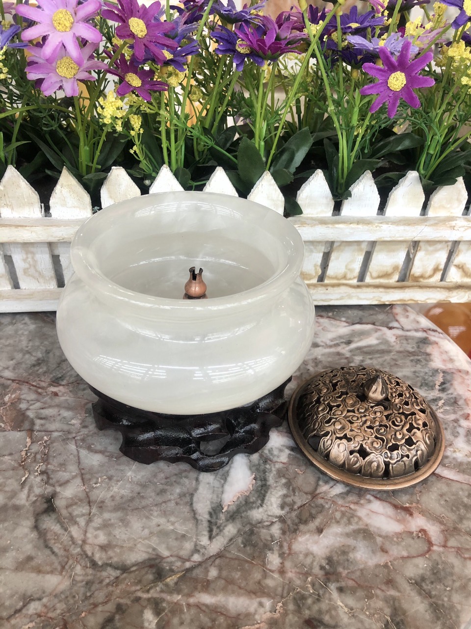 ✨Lư xông trầm hương, hủ đỉnh đốt nhang, trầm hương đá bạch ngọc - Cao 12 cm
