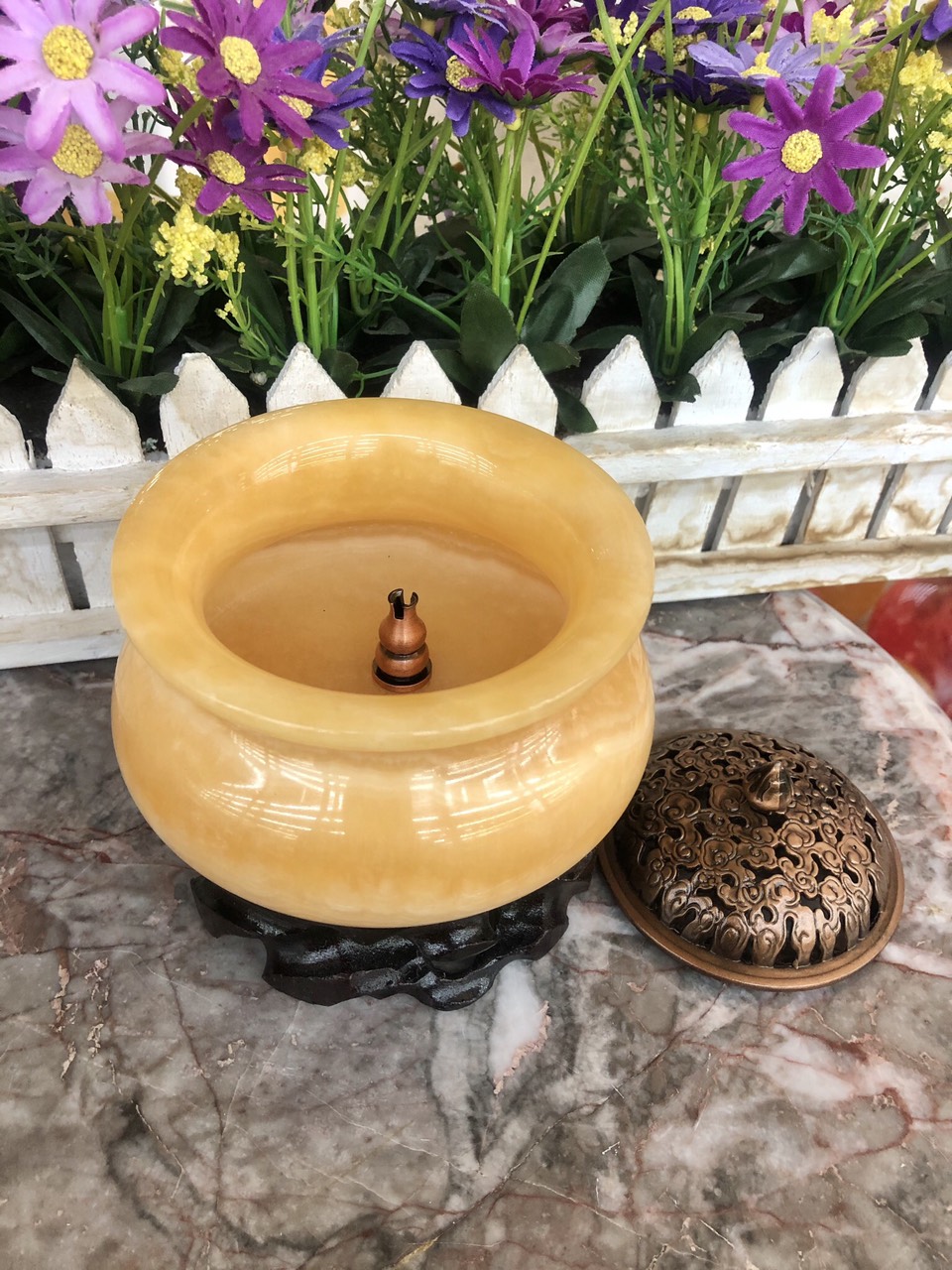 -Lư xông trầm bằng gốm có tấm lót chống nóng , chống ố vàng đáy lư , lư hương sứ kèm đế cắm được tất cả các loại nhang , giúp tạo ra bầu không