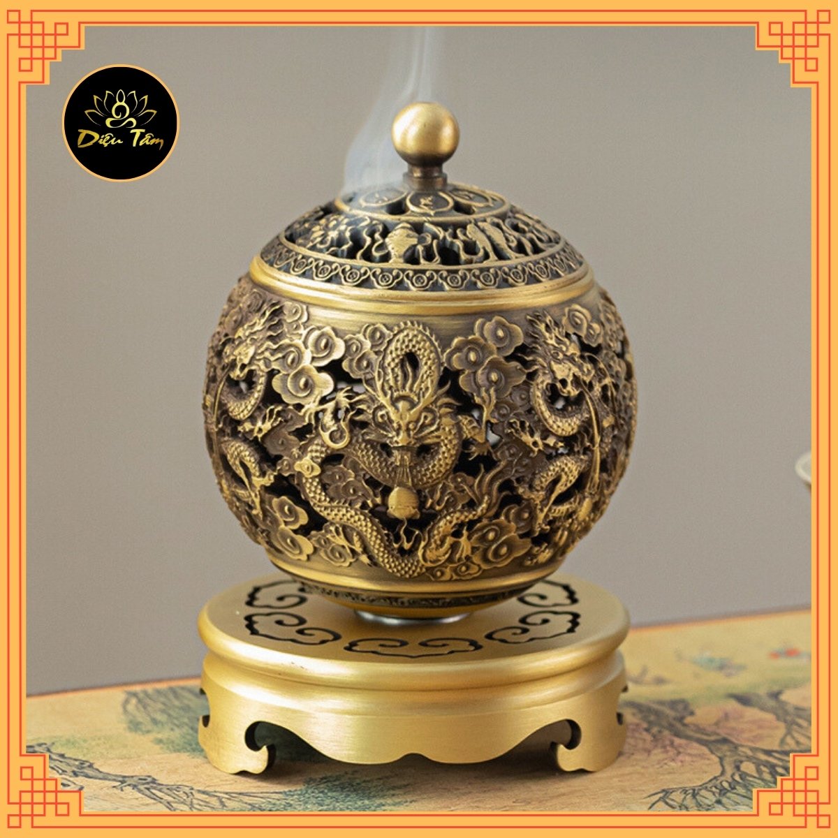 THÔNG TIN SẢN PHẨM Lư đồng lư xông trầm hương trầm nụ cao cấp thiết kế tinh xảo tặng kèm trụ và lót chống cháy shop Diệu Tâm -Chế tác: Thủ công -Chất liệu: Đồng