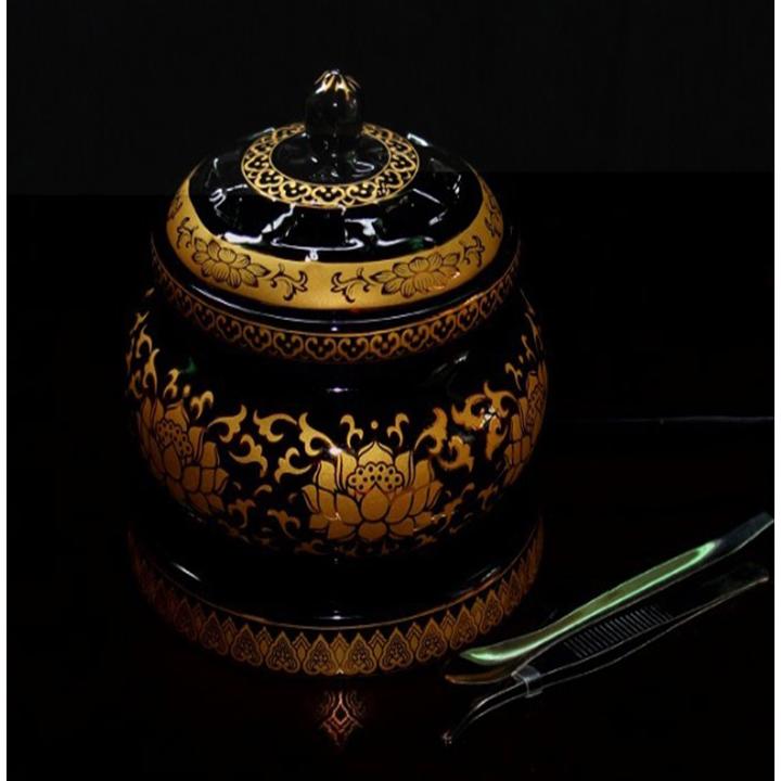 -Lư xông trầm bằng gốm có tấm lót chống nóng , chống ố vàng đáy lư , lư hương sứ kèm đế cắm được tất cả các loại nhang , giúp tạo ra bầu không
