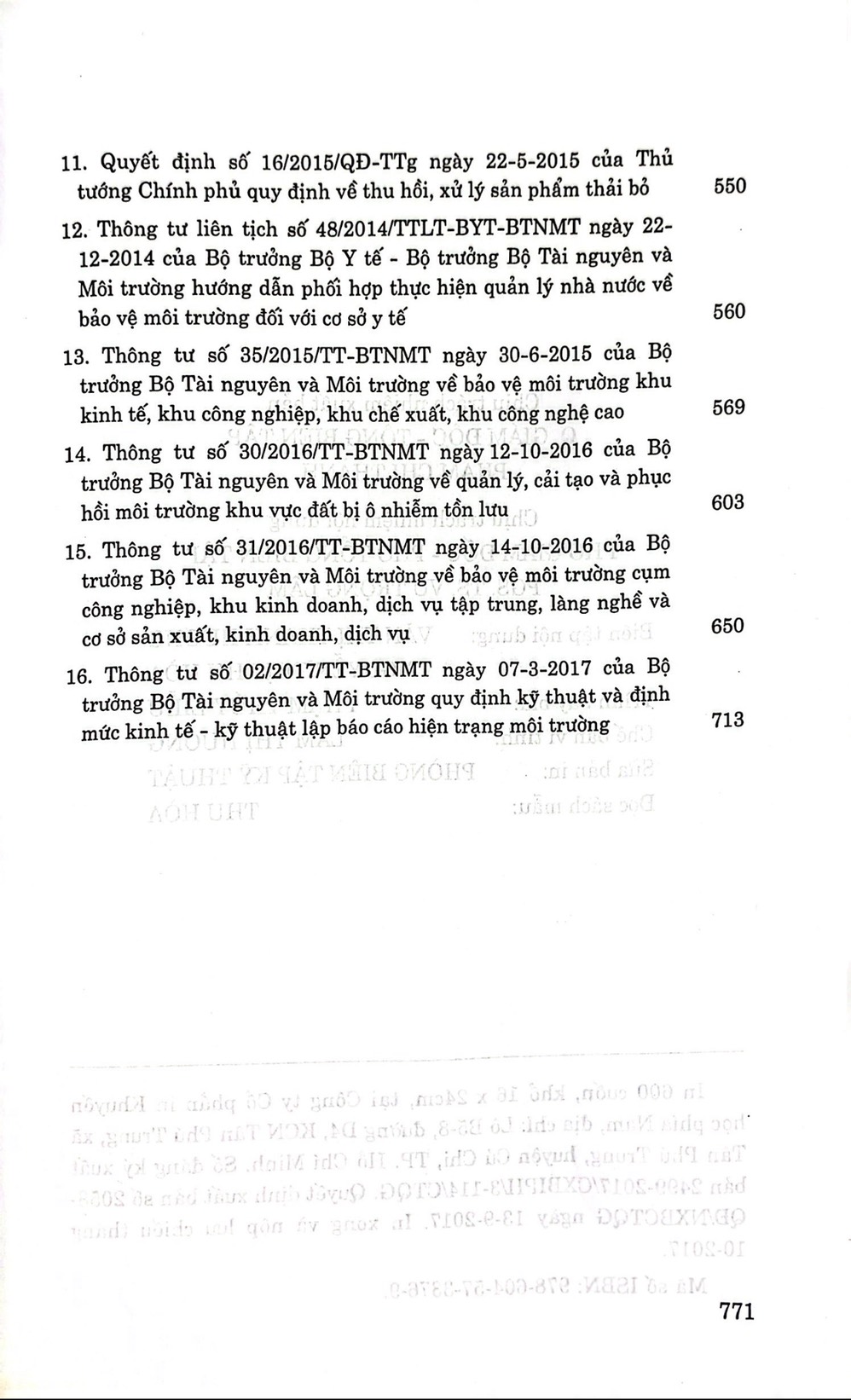 Cuốn sách Luật Bảo vệ môi trường hiện hành (năm 2014) và các văn bản hướng dẫn thi hành của Nhà xuất bản Chính trị quốc gia Sự thật là một hệ thống các văn bản pháp luật về môi trường, được sắp xếp khoa học thuận tiện cho việc tra cứu, sử dụng.