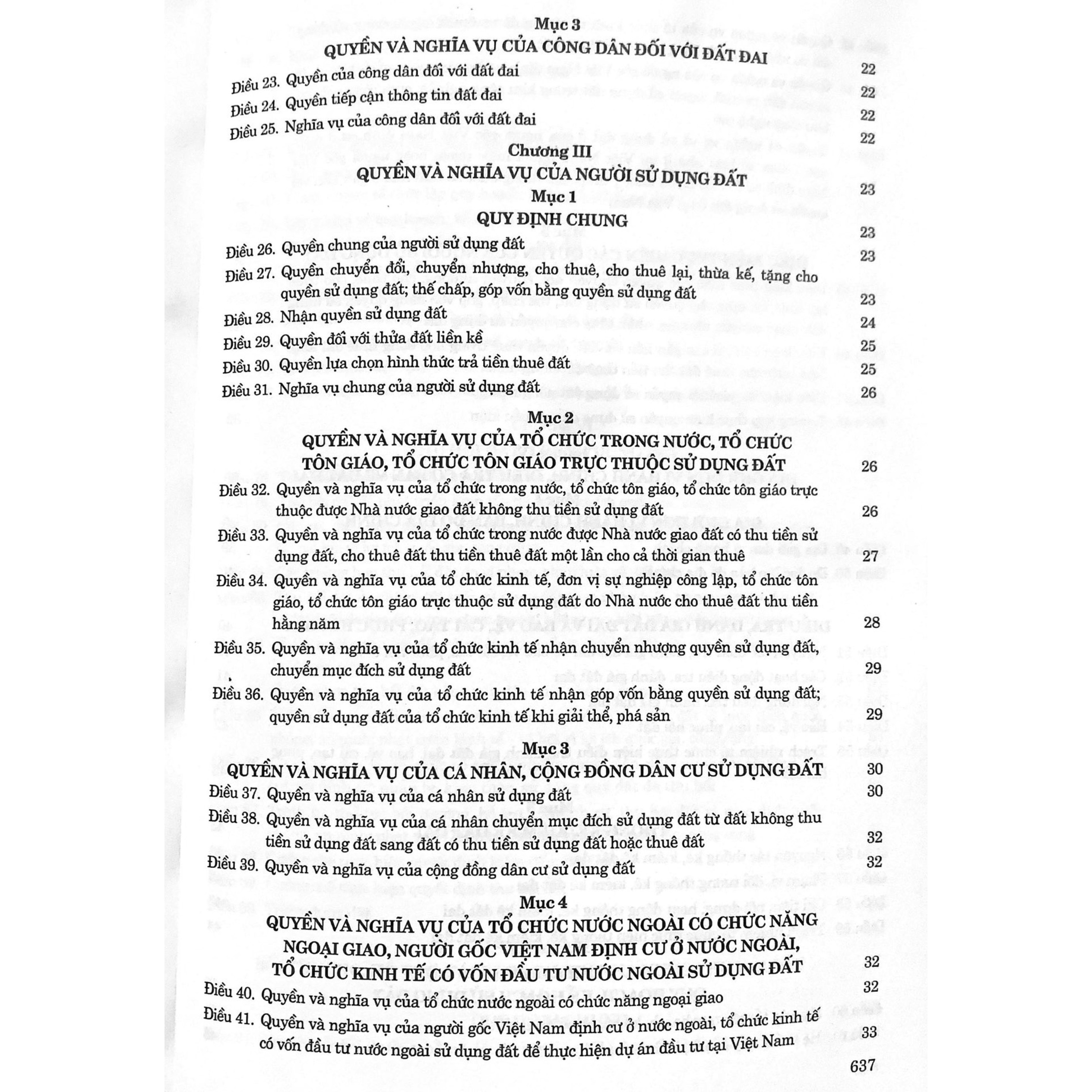 Cuốn sách đăng nguyên văn Luật Đất đai số 31/2024/QH15, cập nhật đầy đủ các nội dung đã được sửa đổi, bổ sung theo Luật số 43/2024/QH15 và các Nghị định hướng dẫn thi hành Luật Đất đai vừa được Chính phủ ban hành: