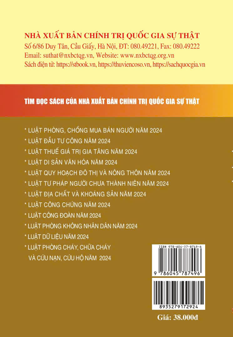 Nhằm đáp ứng nhu cầu của bạn đọc trong việc nghiên cứu, tìm hiểu, áp dụng pháp luật một cách thuận tiện, đầy đủ và thống nhất, Nhà xuất bản Chính trị quốc gia Sự