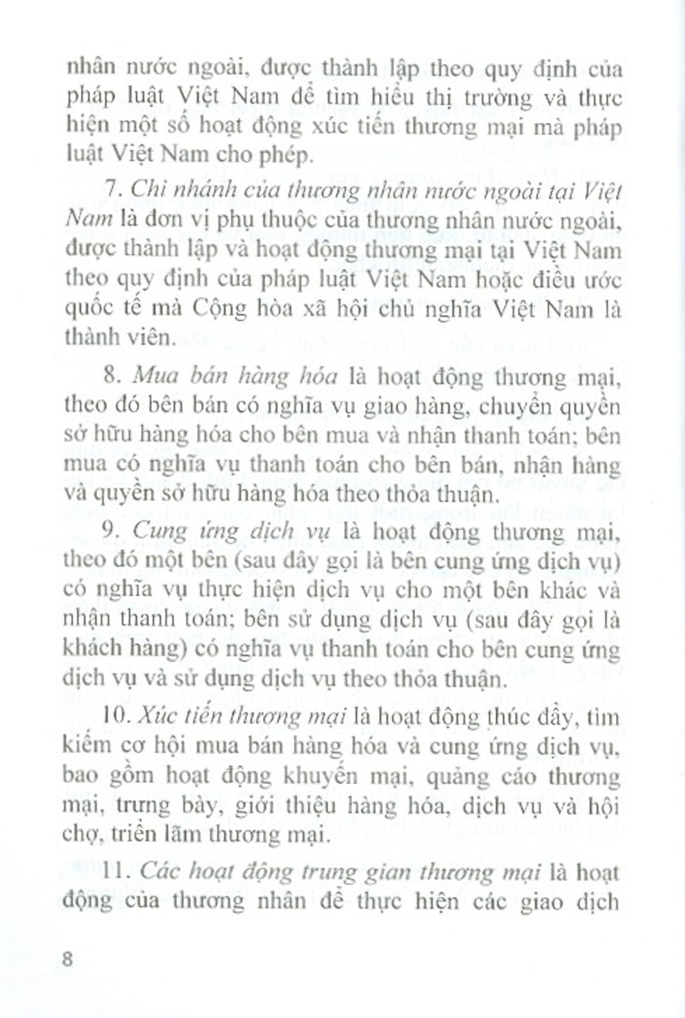 Giới thiệu toàn văn Luật Thương mại (sửa đổi năm 2017, 2019) bao gồm những qui định chung và các qui định cụ thể về mua bán hàng hoá, cung ứng dịch vụ, xúc tiến