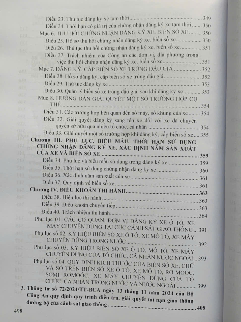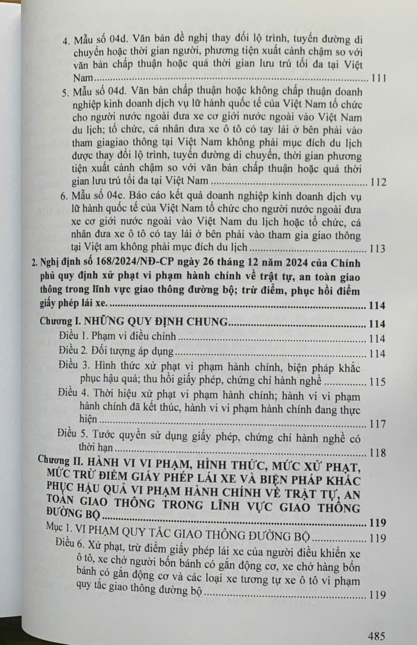 Sách- Luật Trật tự an toàn giao thông đường bộ - Hệ thống văn bản quy định chi tiết thi hành Tác giả: Quốc Hội Nhà xuất bản: Hồng Đức Khổ sách: 19*27cm Phát hành: 2025 Nhà phát hành: Công ty TNHH Sách Luật Việt Nam Giá bìa: 495.000 đ Số trang: 506 trang Hình thức bìa: Bìa mềm Tai nạn giao thông là hiểm họa thường trực đối với mỗi người khi tham gia giao thông trên phạm vi cả nước. Việc nâng cao ý thức chấp hành pháp luật an toàn giao thông để làm thay đổi thái độ, hành vi tự giác chấp hành của người tham gia giao thông luôn được xem là mục tiêu quan trọng trong công tác đảm bảo trật tự an toàn giao thông. Ngày 27 tháng 6 năm 2024, tại kỳ họp thứ 7 Quốc hội khóa XV đã thông qua Luật Trật tự, an toàn giao thông đường bộ. Để sớm đưa luật vào cuốc sống tạo hành lang pháp lý vừa qua Chính phủ các Bộ đã ban hành nhiều văn bản quy định chi tiết thi hành. Nội dung cuốn sách gồm các phần sau: Phần thứ nhất. LUẬT TRẬT TỰ, AN TOÀN GIAO THÔNG ĐƯỜNG BỘ (Được Quốc hội nước Cộng hòa xã hội chủ nghĩa Việt Nam khóa XV, kỳ họp thứ 7 thông qua ngày 27 tháng 6 năm 2024) Phần thứ hai. HỆ THỐNG NGHỊ ĐỊNH QUY ĐỊNH CHI TIẾT THI HÀNH LUẬT TRẬT TỰ, AN TOÀN GIAO THÔNG ĐƯỜNG BỘ Phần thứ ba. HỆ THỐNG THÔNG TƯ HƯỚNG DẪN CHI TIẾT THI HÀNH LUẬT TRẬT TỰ, AN TOÀN GIAO THÔNG ĐƯỜNG BỘ Nghị định số 151/2024/NĐ-CP ngày 15 tháng 11 năm 2024. Nghị định số 168/2024/NĐ-CP ngày 26 tháng 12 năm 2024. Nghị định số 176/2024/NĐ-CP ngày 30 tháng 12 năm 2024. Nghị định số 160/2024/NĐ-CP ngày 18 tháng 12 năm 2024. Nghị định số 161/2024/NĐ-CP ngày 18 tháng 12 năm 2024. Nghị định số 156/2024/NĐ-CP ngày 10 tháng 12 năm 2024. Thông tư số 83/2024/TT-BCA ngày 15 tháng 11 năm 2024. Thông tư số 79/2024/TT-BCA ngày 15 tháng 11 năm 2024. Thông tư số 72/2024/TT-BCA ngày 13 tháng 11 năm 2024. Thông tư số 71/2024/TT-BCA ngày 12 tháng 11 năm 2024. Thông tư số 36/2024/TT-BYT ngày 16 tháng 11 năm 2024. Thông tư số 69/2024/TT-BCA ngày 12 tháng 11 năm 2024. Thông tư số 65/2024/TT-BCA ngày 12 tháng 11 năm 2024. Thông tư số 38/2024/TT-BGTVT ngày 15 tháng 11 năm 2024. Thông tư số 53/2024/TT-BGTVT ngày 15 tháng 11 năm 2024.