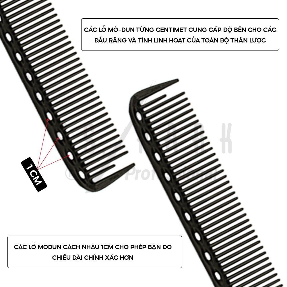 - Các lỗ mô-đun từng centimet cung cấp độ bền của các đầu răng và tính linh hoạt của toàn bộ thân lược. Các lỗ cách nhau 1cm cho phép bạn đo chiều dài chính xác hơn.