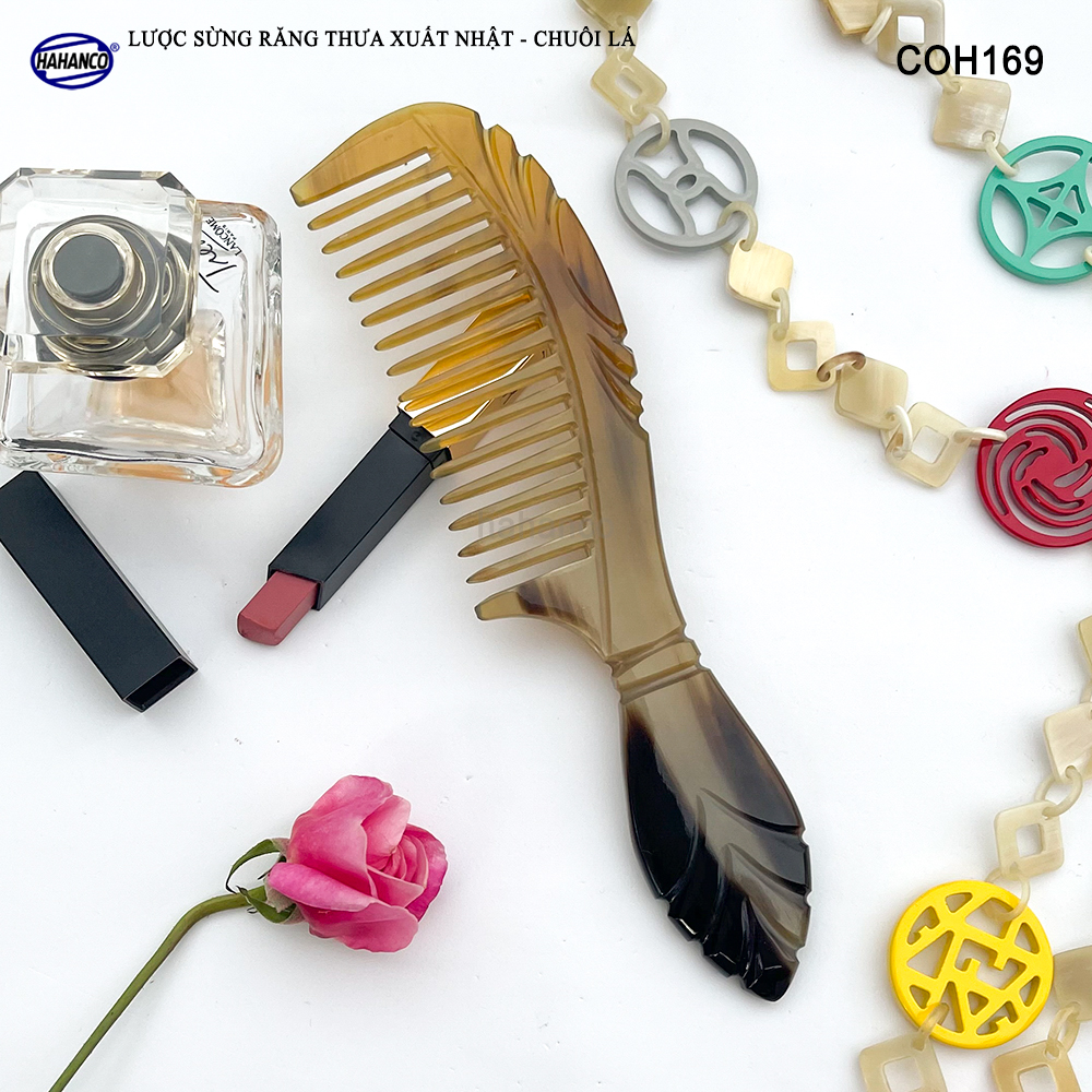 - Đây là mẫu lược sừng răng thưa, được thiết kế chuôi lược hình lá, dễ sử dụng, chuyên chải các loại tóc xù, tóc xoăn, tóc rối và có thể mát xa đầu. với kích thước lớn, hầu hết trên những chiếc lược, phù hợp với toàn bộ người sử dụng. Sản xuất với nhiều công đoạn phức tạp, Được các nghệ nhân của HAHANCO thổi hồn vào chiếc lược này, tạo ra các họa tiết và đường nét uốn lượn sắc sảo, làm cho chiếc lược cổ điển không còn nhàm chán mỗi khi bạn cầm trên tay. Những chiếc răng lược được các bàn tay khéo léo mài dũa từng chiếc một cẩn thận để đạt được độ nhẵn bóng, khi chải tóc sẽ không làm gãy và rụng tóc. MÔ TẢ SẢN PHẨM: