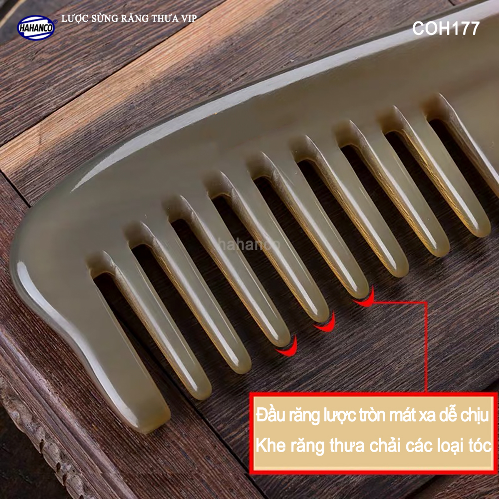 Lược sừng răng thưa thần thánh chải tóc- Massa đầu giúp lưu thông máu- Hahanco- COH143 LH:0966218866