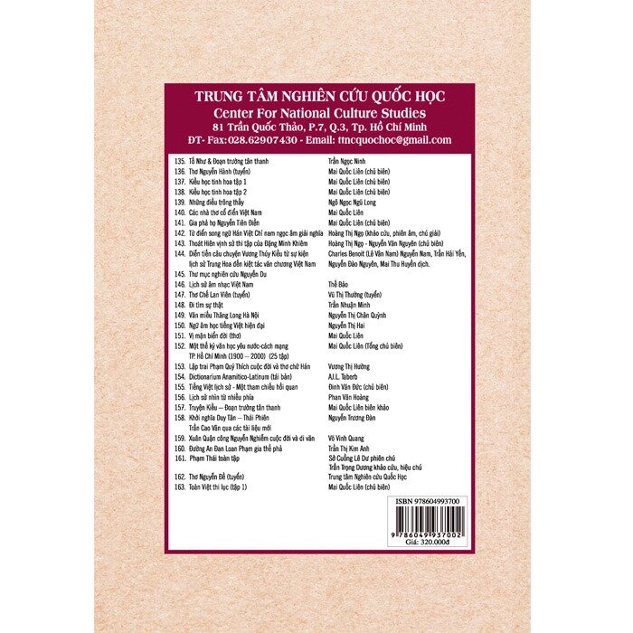 Tác giả: Trần Đăng Suyền Kích thước: 14.5 x 20.5 cm Đối tượng: Học sinh, sinh viên, giáo viên, các nhà nghiên cứu Phiên bản: Bìa mềm (120.000) và bìa cứng (150.000) Số trang: 310