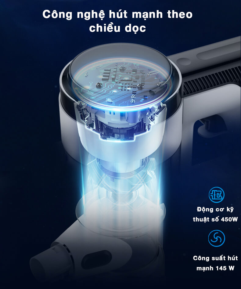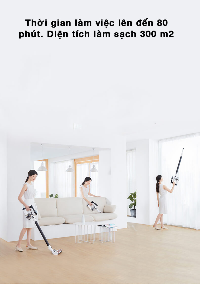 - Tự động điều chỉnh lực hút để giảm tiếng ồn do gió lốc mạnh tạo ra. Công nghệ hút mạnh theo chiều dọc giúp tránh tiếng ồn của gió do thiết kế cong Chuyển đổi lực hút thông minh, tiết kiệm năng lượng hơn và thời lượng pin khoảng 80 phút, giúp có thể làm sạch ngôi nhà diện tích khoảng 300m2 Nguồn điện được tự động điều chỉnh theo lực hút, giảm thiểu thất thoát và lãng phí. điện năng hiệu quả. Được trang bị 2 quả pin có thời gian làm việc lên đến 80 phút, dễ dàng đáp ứng nhu cầu vệ sinh của các căn hộ lớn Làm sạch bộ lọc thông minh. Hệ thống nhắc nhỏ nhu cầu vệ sinh lõi lọc