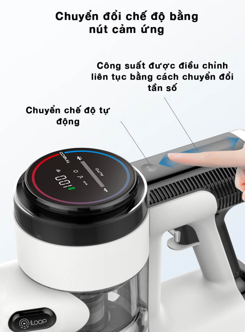 - Lọc khoảng 99,99% bụi mịn theo từng lớp để tránh ô nhiễm không khí thứ cấp và tạo ra môi trường sạch sẽ cho bạn. Cảm ứng trượt điện rung, chuyển đổi chế độ Hai chế độ có thể được chuyển đổi tự do, ở chế độ tự động máy sẽ tự động điều chỉnh lực hút để hoạt động và ở chế độ thủ công. Việc điều chỉnh băng cảm ứng điện dung trượt. Bàn chải sàn LED truyền động trực tiếp