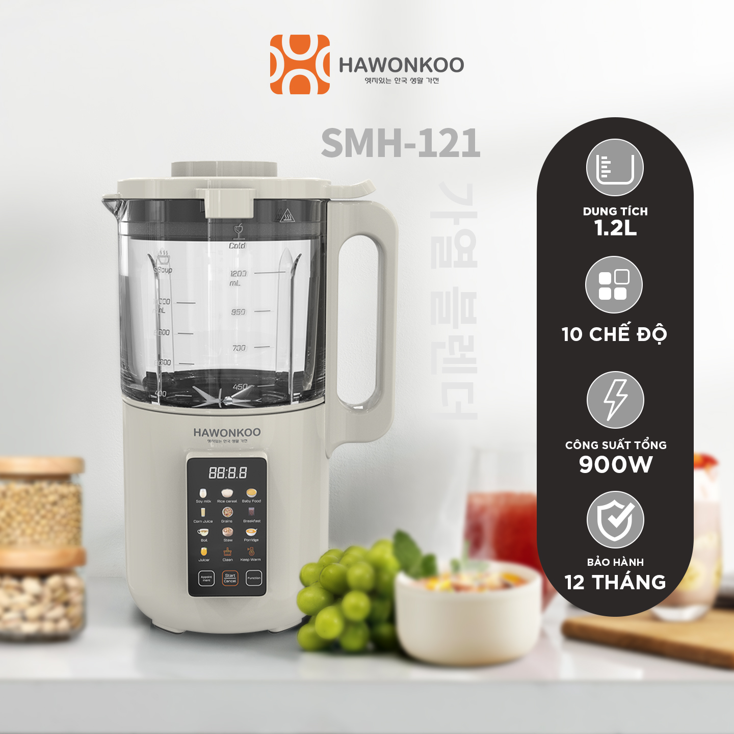 ✨Máy Làm Sữa Hạt Hawonkoo SMH-121 10 chế độ nấu 900W 1200ML Hàng Chính Hãng Bảo Hành 12 Tháng - Thương Hiệu Hàn Quốc