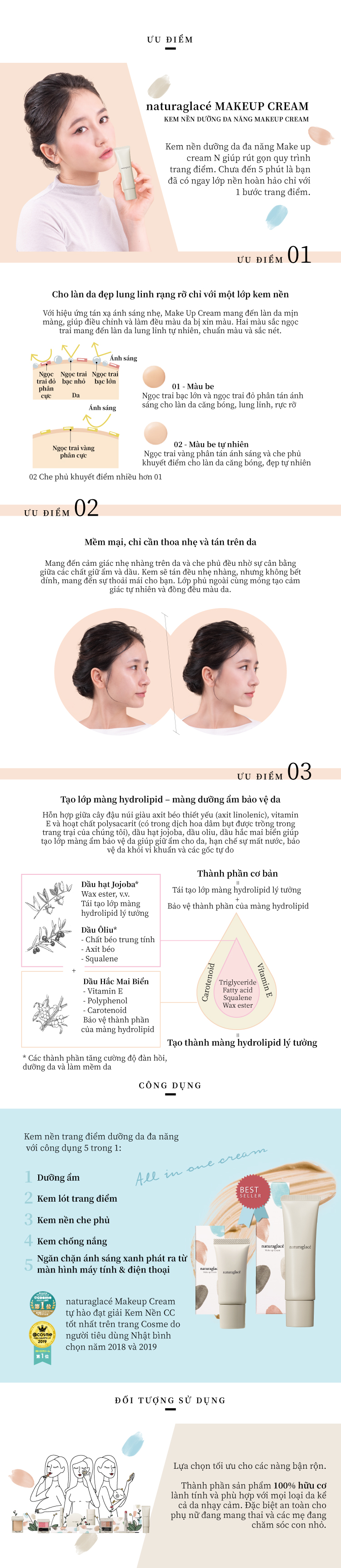 ✨Make Up Cream On The Go (30 gói Shachet) - Kem nền hữu cơ đa năng naturaglacé Make Up Cream (01 - Màu be)