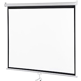 Kích thước màn chiếu  Tỉ lệ 1:1  100"  Kích thước trình chiếu 178 x 178cm 120"  Kích thước trình chiếu 213 x 213cm 135" Kích thước trình chiếu 244 x 244cm   Tỉ lệ 4:3 100" Kích thước trình chiếu 203 x 153cm 120" Kich thước trình chiếu 244 x 183cm Màn chiếu treo tường kéo tay là loại màn chiếu giá rẻ nhưng hiệu quả rất phù hợp với phòng chiếu phim gia đình, trường học, doanh nhiệp. trung tâm đào tạo,… – Chất liệu vải trắng mờ (matt white JB): rất bền và dể dàng lau chùi. Mặt sau phủ chất liệu PVC đen giúp màn chiếu ngăn ánh sáng xuyên qua giữ được trọn vẹn hình ảnh sống động. – Góc nhìn 160 độ, 1.1 Gain phù hợp với các loại trình chiếu thuyết trình, chiếu phim, tương thích với HD, 4K Ultra HD, 3D-DLP và HDR với hình ảnh rõ nét, sống động. – Màn có kích thước từ 60 inch đến 170 inch tỉ lệ 1:1 và 4:3 – Có thể đặt kích thước theo yêu cầu riêng. –  Màn chiếu được thiết kế 8 cạnh phù hợp cho việc treo trường và treo trần với thao tác lắp đặt nhanh chóng và dể dàng. – Thiết bị khóa tự động tiên tiến, giúp người dùng kéo và dừng màn bất kỳ điểm nào. – Hệ thống lò xo cuốn giúp cuốn màn dể dàng chỉ bằng một thao tác nhỏ.