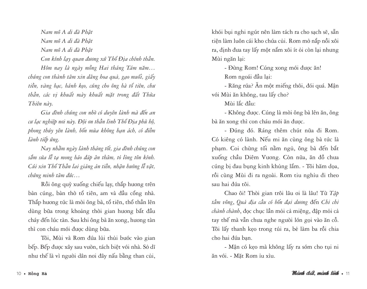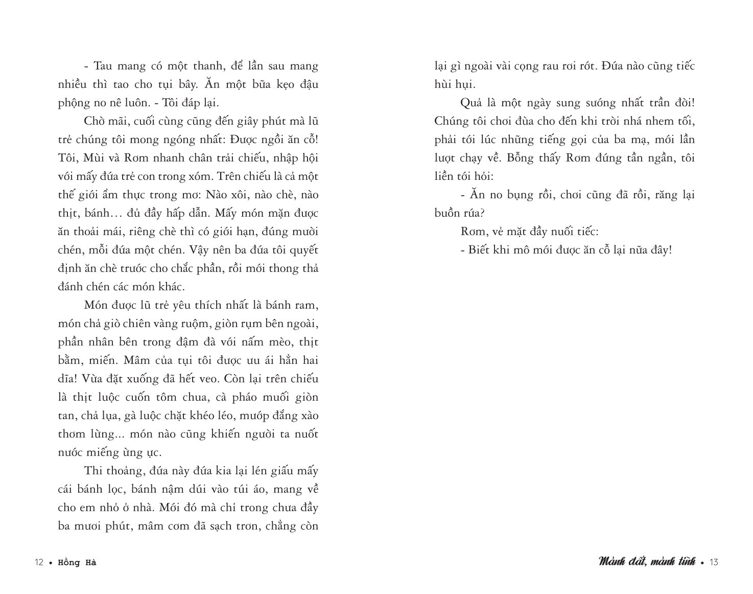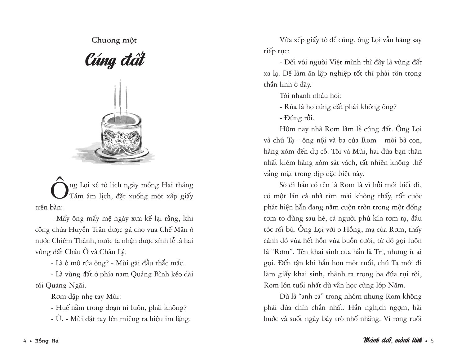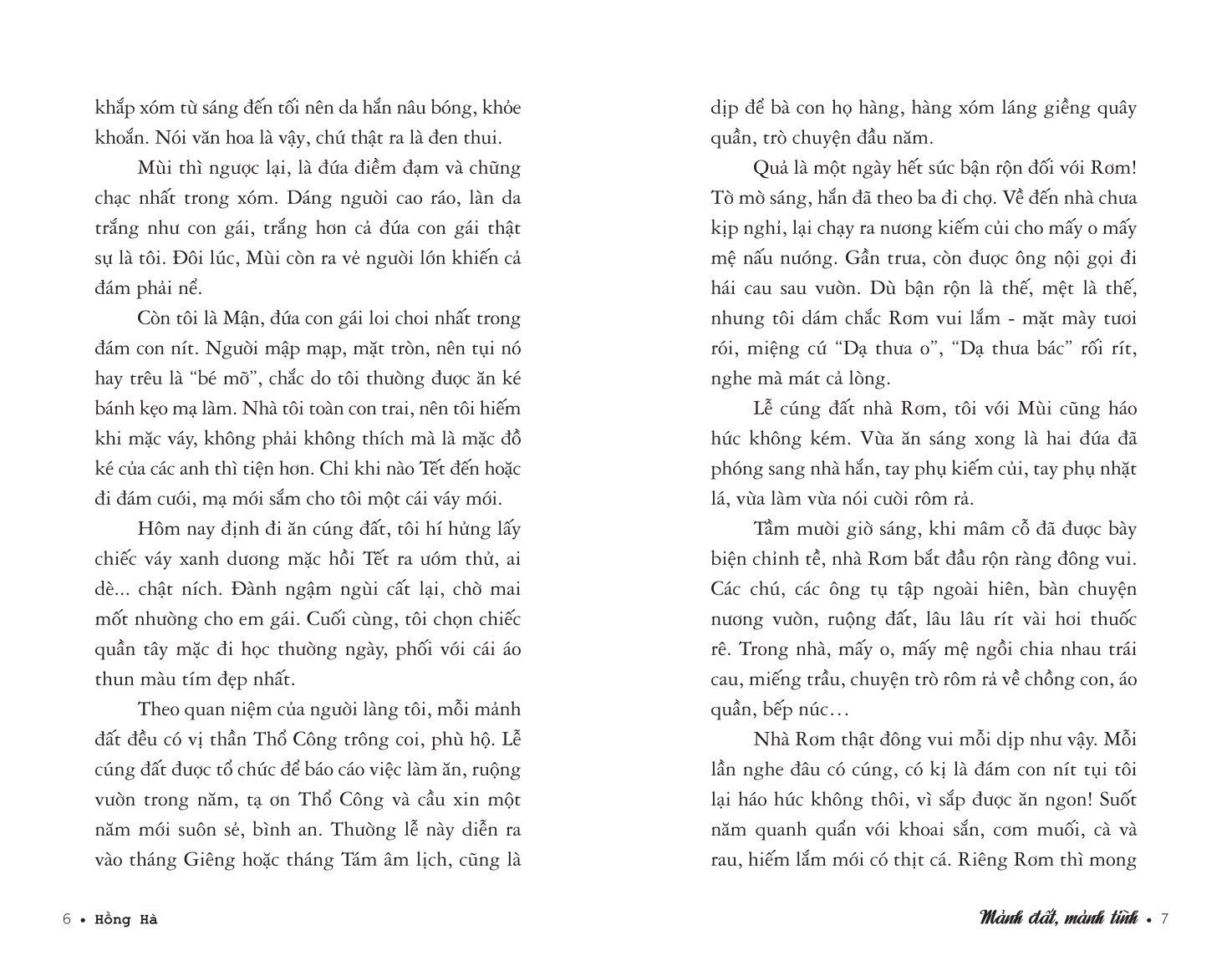 Như chuyến đò lững lờ xuôi ngược dòng thời gian, Mảnh đất, mảnh tình đưa người đọc trở về với tuổi thơ bình dị nơi làng quê xứ Huế. Ở nơi thoảng mùi khói bếp tro nồng, tiếng ve rộn rã mùa đậu chín, cô bé Mận cùng bạn bè trải qua những ngày tháng trong trẻo, lớn lên giữa làng quê nghèo khó mà thấm đẫm tình người. Có mưa bão gian truân, có mất mát xót xa, nhưng cũng có tiếng cười giòn tan, hơi ấm sẻ chia và những ước mơ nhỏ bé mà mãnh liệt...