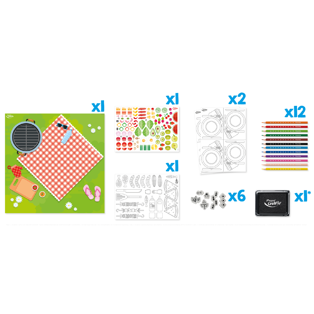 Mua tại TiktokTÍNH NĂNG SẢN PHẨM: ️ An toàn cho bé, không chứa hóa chất độc hại ️ Thích hợp cho bé từ 4 tuổi, giúp bé tăng cường sức sáng tạo ️ Thiết kế độc quyền, giúp bé vui chơi, thỏa sức sáng tạo và có những trải nghiệm tuyệt vời THÔNG TIN CHI TIẾT: Loại sản phẩm: Bộ dụng cụ thủ công trang trí tiệt nướng ngoài trời Mã sản phẩm: 907009 Sản phẩm chính hãng từ MAPED VIỆT NAM