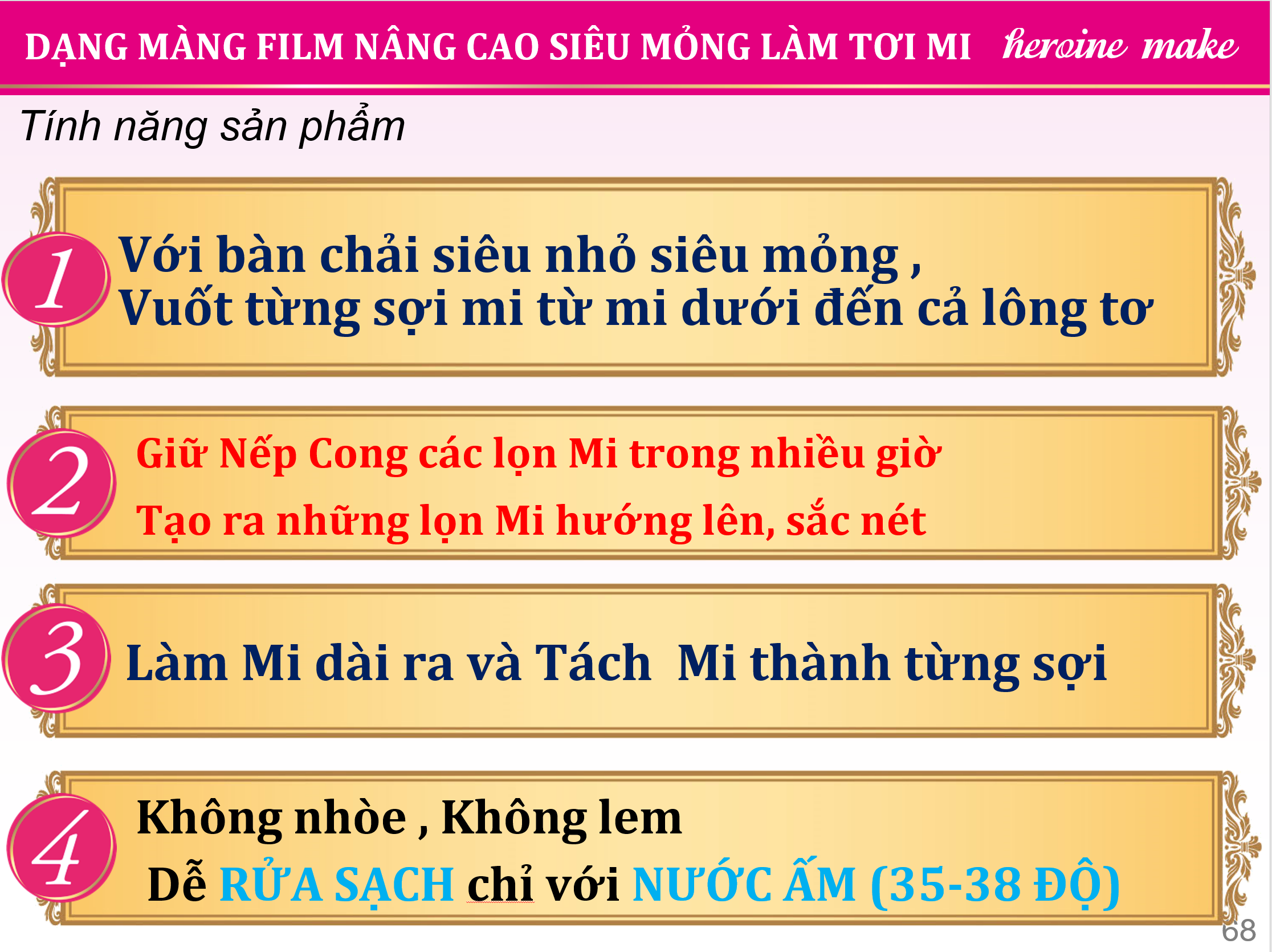 MASCARA DẠNG MÀNG FILM NÂNG CAO KISSME HEROINE MAKE SIÊU CHỐNG TRÔI GIÚP NÂNG CONG VÀ VUỐT DÀI MI - MÀU ĐEN TUYỀN #01 ( PHIÊN BẢN CAO CẤP ) Số Lô: In trên sản phẩm Khối lượng tịnh : 6 g Mã Vạch: 4901433040464 Xuất Xứ: Nhật Bản KISSME HEROINE MAKE REAL LASH MASCARA ADVANCED FILM #01 Mascara chiết xuất từ Sữa Ong Chúa , Hoa Trà, Nụ Tầm Xuân , Dầu Argan, thành phần “ KHOÁ GIỮ NẾP CONG” , đặc biệt “SỢI POLYMER EX 5MM LÀM DÀI “ kết hợp công thức “ CHỐNG TRÔI NÂNG CAO” vừa Kéo Dài - Nâng Cong từng sợi mi , vừa Khóa Giữ Nếp Cong Cả Ngày . Ngoài ra còn cung cấp dưỡng chất dưỡng mi , tránh tình trạng cay mắt, rụng mi , nhăn vùng mí mắt khi sử dụng . Tuy độ bám siêu bền , không trôi nhưng lại dễ dàng rửa sạch bằng nước ấm ( 36-38 Độ ) . Công Dụng : Sản phẩm giúp trang điểm cho lông mi, giúp làm cong và làm đẹp cho lông mi. Cách dùng : Dùng đầu chải Mascara vuốt ½ Đuôi mi rồi đến ½ Đầu mi còn lại ( vuốt theo hướng ra ngoài ) . Lặp lại các bước đến khi Làn mi có độ DÀI và CONG phù hợp * NÊN LẮC ĐỀU TRƯỚC KHI SỬ DỤNG * LAU SẠCH ĐẦU CỌ VÀ ĐÓNG NẮP SAU KHI SỬ DỤNG. Bảo Quản: Tránh để nơi quá lạnh và ánh nắng trực tiếp vào sản phẩm, để xa tầm tay trẻ em khi không sử dụng . Lưu ý: Khi dùng nếu có biểu hiện như mẩn ngứa hay có triệu chứng gì bất thường thì ngừng không được sử dụng. NHÀ SẢN XUẤT: ISEHAN CO., LTD NHÀ NHẬP KHẨU VÀ CHỊU TRÁCH NHIỆM ĐƯA SẢN PHẨM RA THỊ TRƯỜNG : CÔNG TY TNHH TM DV HÒA PHÚC -------------------------------------------------------------------------- CAM KẾT CHÍNH HÃNG - CHẾ ĐỘ BẢO HÀNH THEO NHÀ SẢN XUÂT