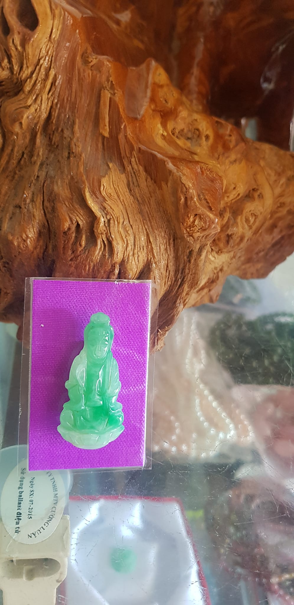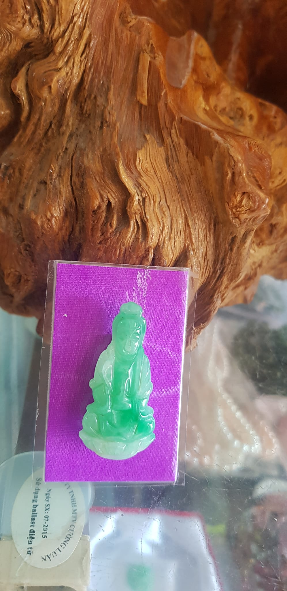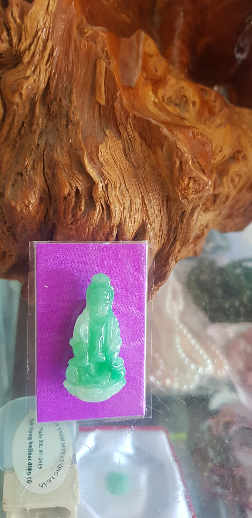 Mặt dây chuyền Nữ Phật Quan Âm Ngồi đẹp đá ngọc cẩm thạch tự nhiên đẹp size nhỏ Nữ size nhỏ Cao 39mm x N18mm x S4mm Màu xanh lý trắng mượt mà bóng đẹp các Chị về bọc vàng đeo đẹp ạ