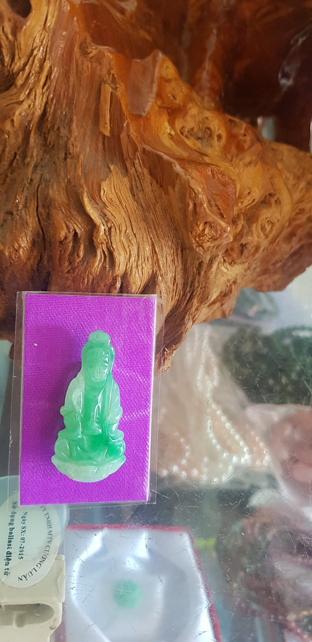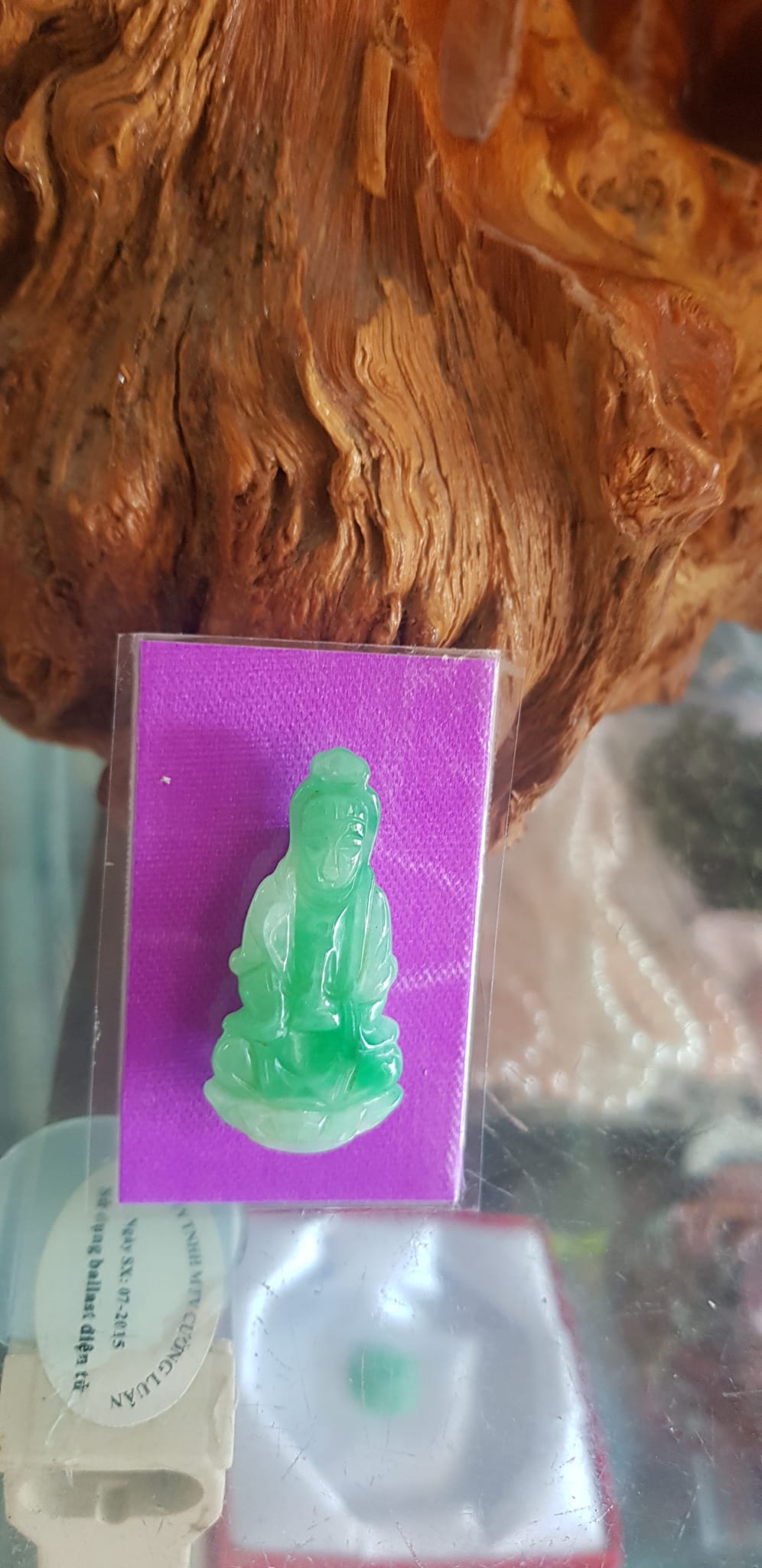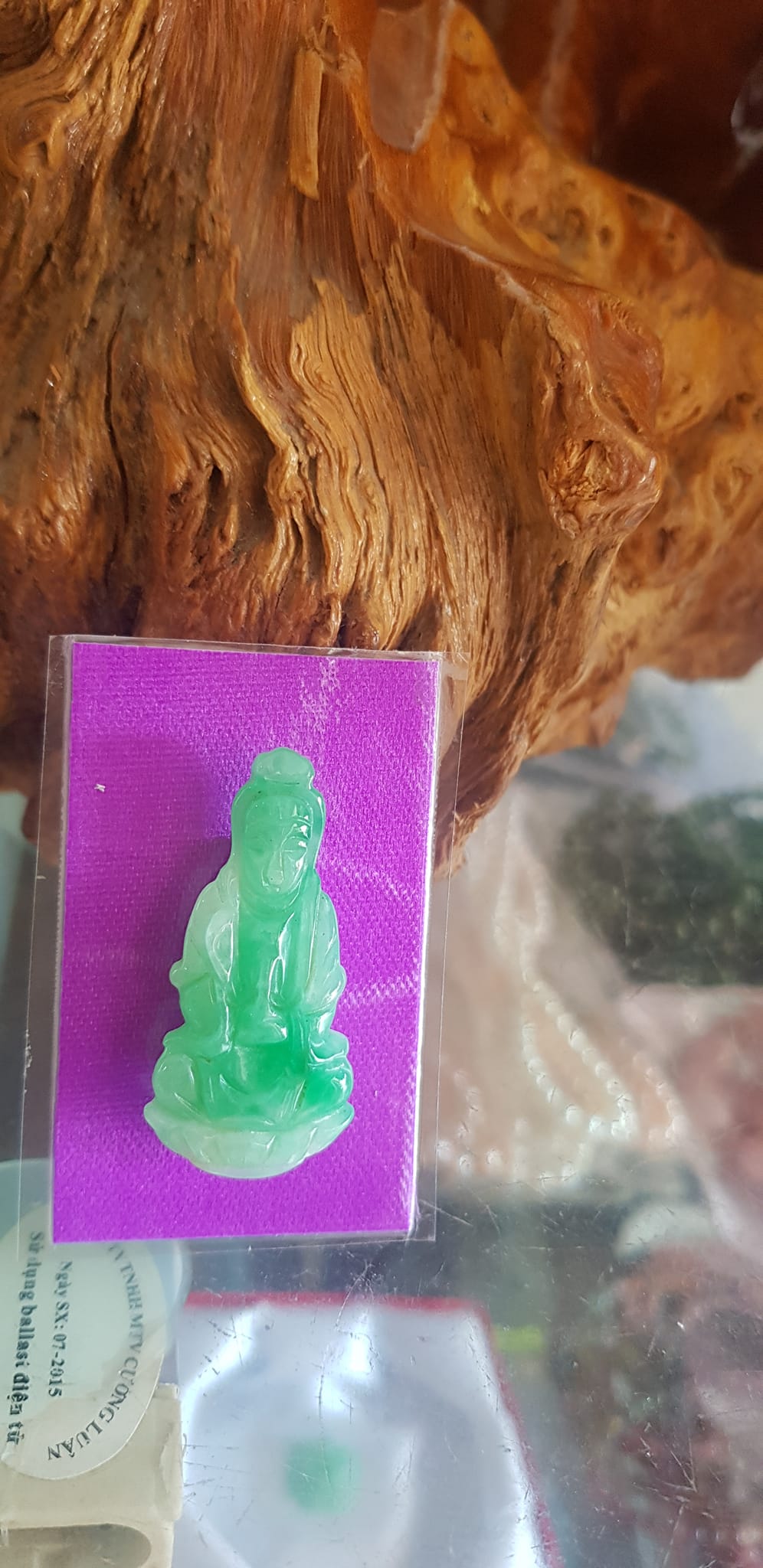 Mặt dây chuyền Nữ Phật Quan Âm Ngồi đẹp đá ngọc cẩm thạch tự nhiên đẹp size nhỏ Nữ size nhỏ Cao 39mm x N18mm x S4mm Màu xanh lý trắng mượt mà bóng đẹp các Chị về bọc vàng đeo đẹp ạ