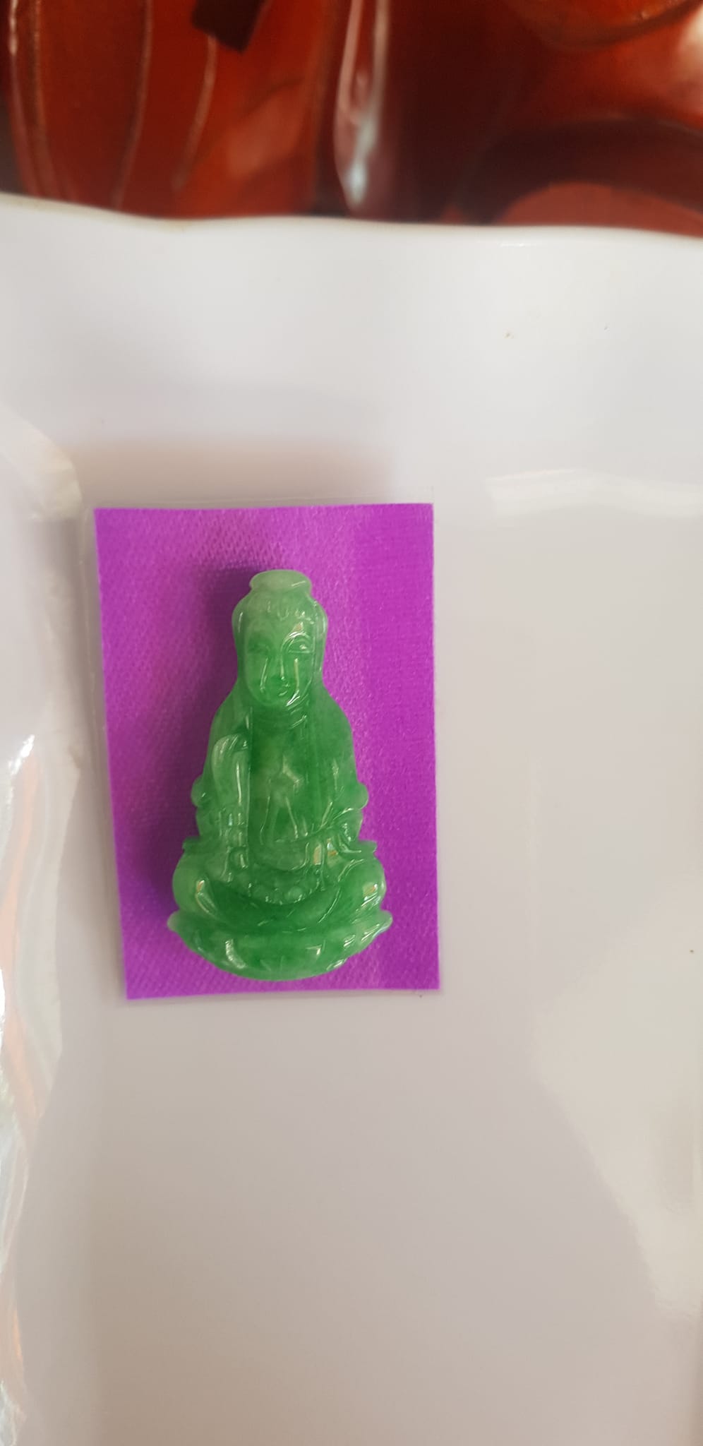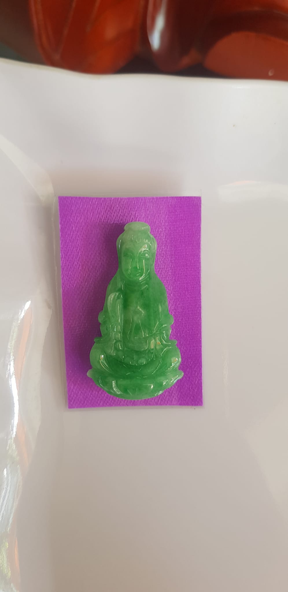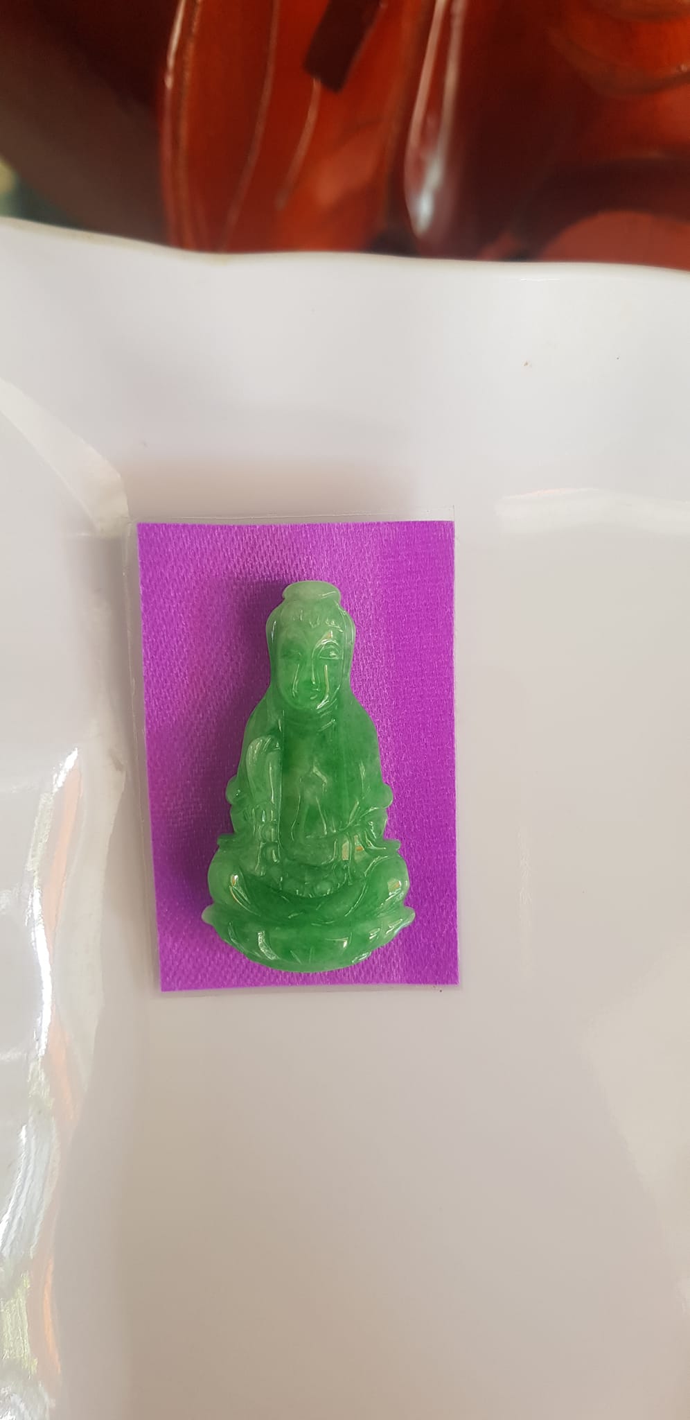 Mặt dây chuyền Nữ Phật Quan Âm Ngồi đẹp đá ngọc cẩm thạch tự nhiên đẹp Size vừa nhỏ Cao 40mm x N20mm x S6mm Màu xanh lý đều bóng đẹp các Chị về bọc vàng đeo đẹp ạ