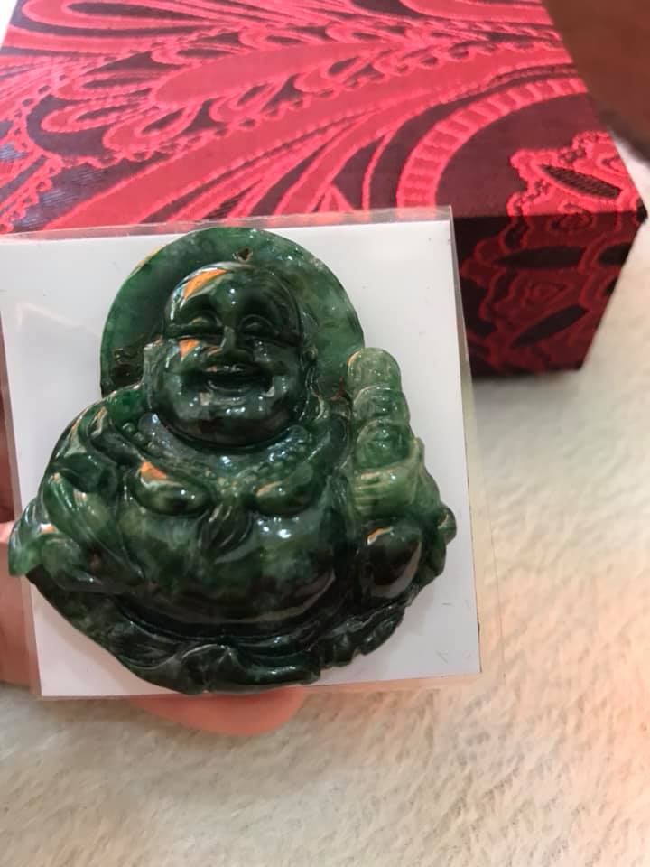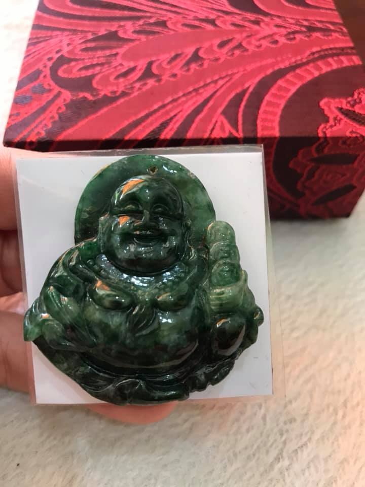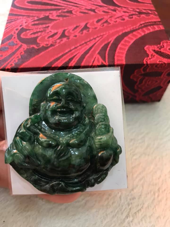 Mặt Dây Chuyền Nam Phật Di Lặc Đá Ngọc Cẩm Thạch Tự Nhiên bóng đẹp 48mm dầy 9mm - Shop Sunny Quận 8
