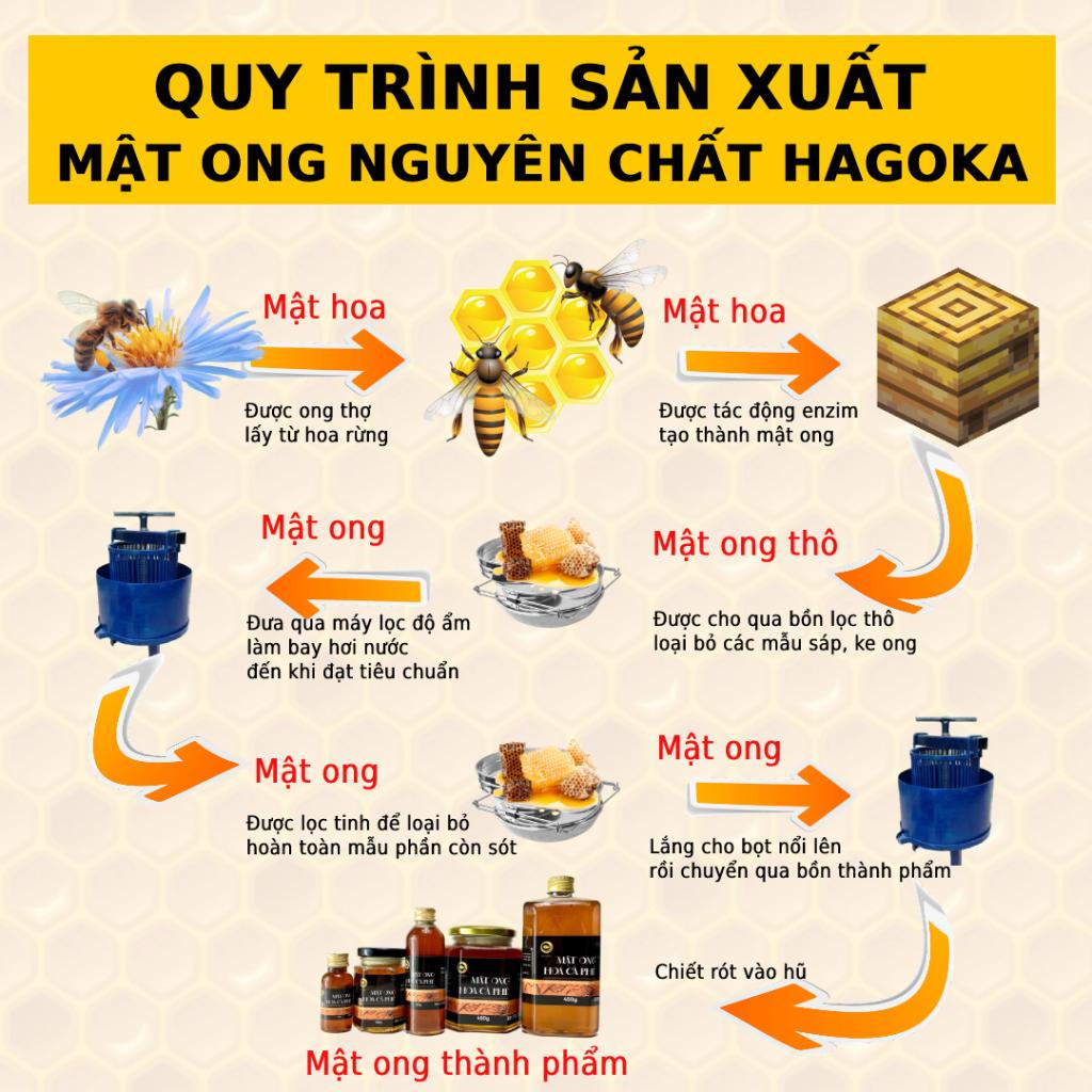 Với sản phẩm tươi sống, trọng lượng thực tế có thể chênh lệch khoảng 10%. Quy trình khai thác Mật Ong hoa nhãn Nguyên Chất HAGOKA: Những giọt mật thơm ngon vàng óng và đặc