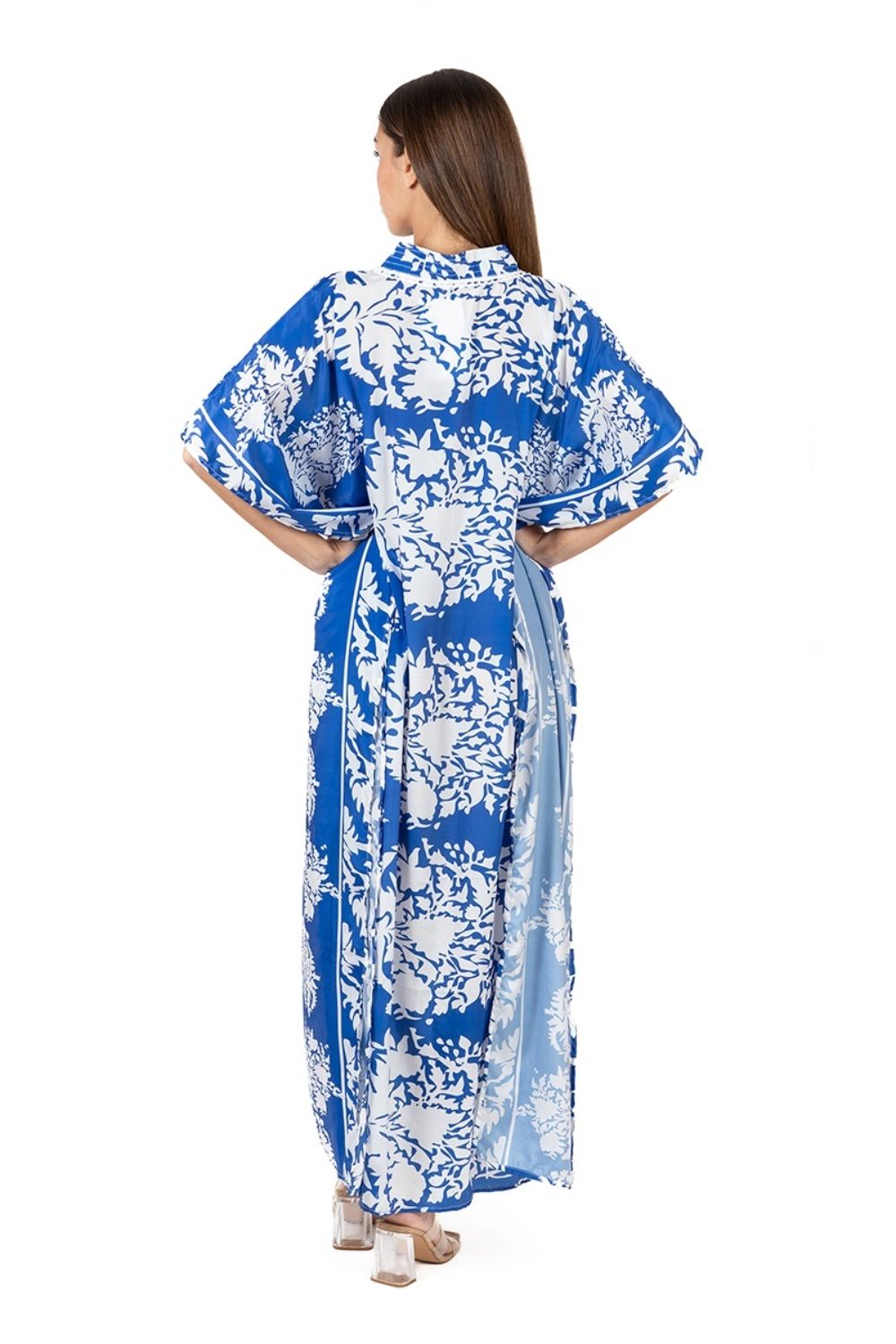 Maxi Cánh Dơi Hoa Cotton Isla Bonita, chất liệu lụa cao cấp, mềm mại, thoáng mát. Xẻ tà 2 bên. Hoa xanh nổi bật trên nền vải trắng. Đầm cánh dơi, phom rộng freestyle. Dài