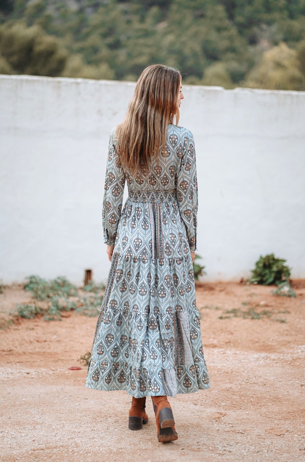 Maxi Cotton Cao Cấp Luna Llena, Chất cotton mềm mại, dày dặn, họa tiết trang nhã. Cut out phần lưng sau. Dài 130 (40x130) Phù hợp: Dự tiệc, dạo phố, đi biển hoặc công sở.