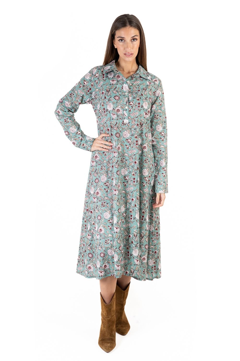 Đầm Midi Sơ Mi Cotton Isla Bonita, chất liệu cotton mỏng nhẹ, mềm mại như tơ. Phom rộng. Dài 102cm (60x102) Phù hợp đi biển, dạo phố, công sở, hoặc dự tiệc. Hướng dẫn sử