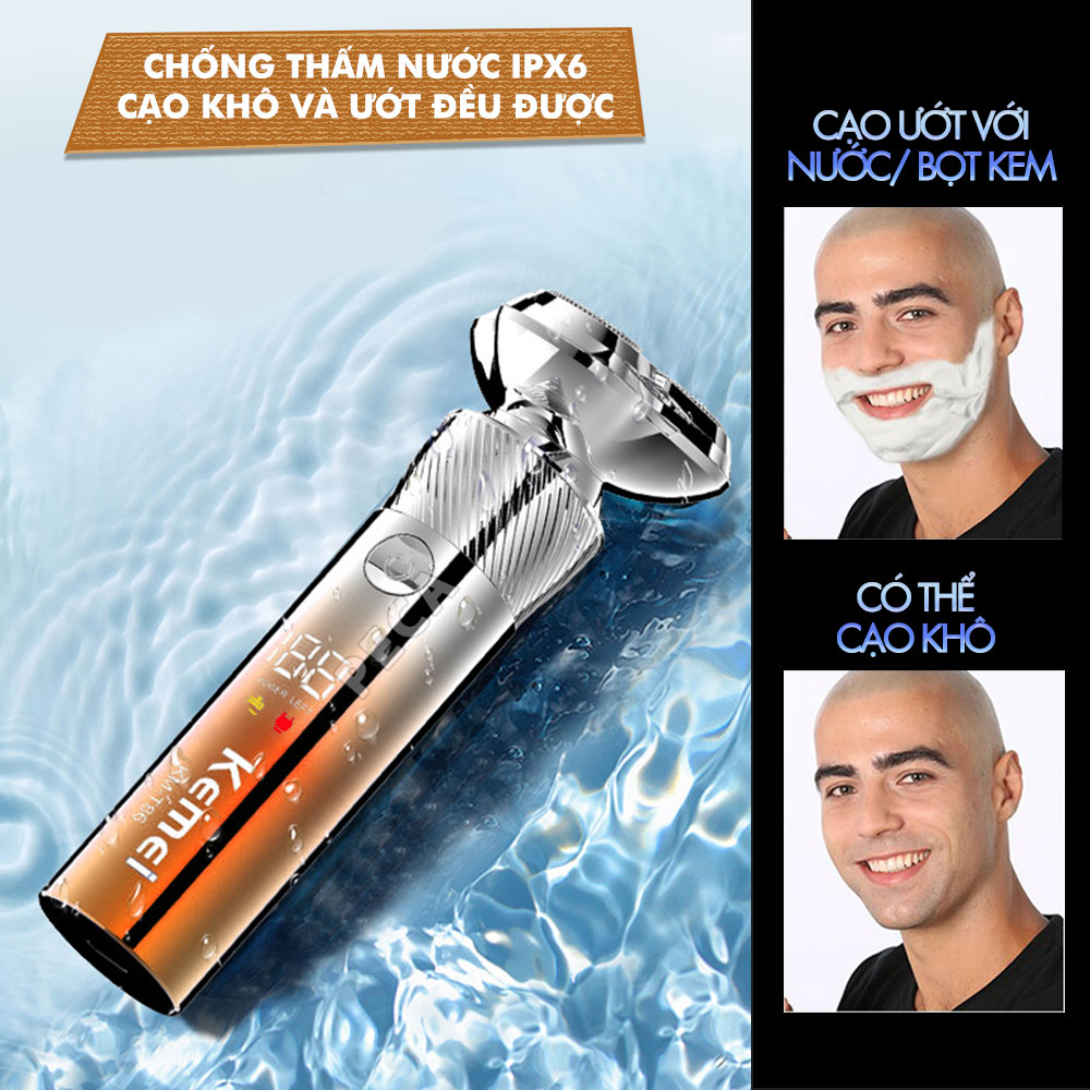 Cạo Ướt: Máy cũng hỗ trợ cạo ướt khi sử dụng cùng bọt cạo râu hoặc gel. Tính năng này đặc biệt hữu ích cho những người có làn da nhạy cảm, giúp giảm thiểu kích ứng và mang lại cảm giác thoải mái.