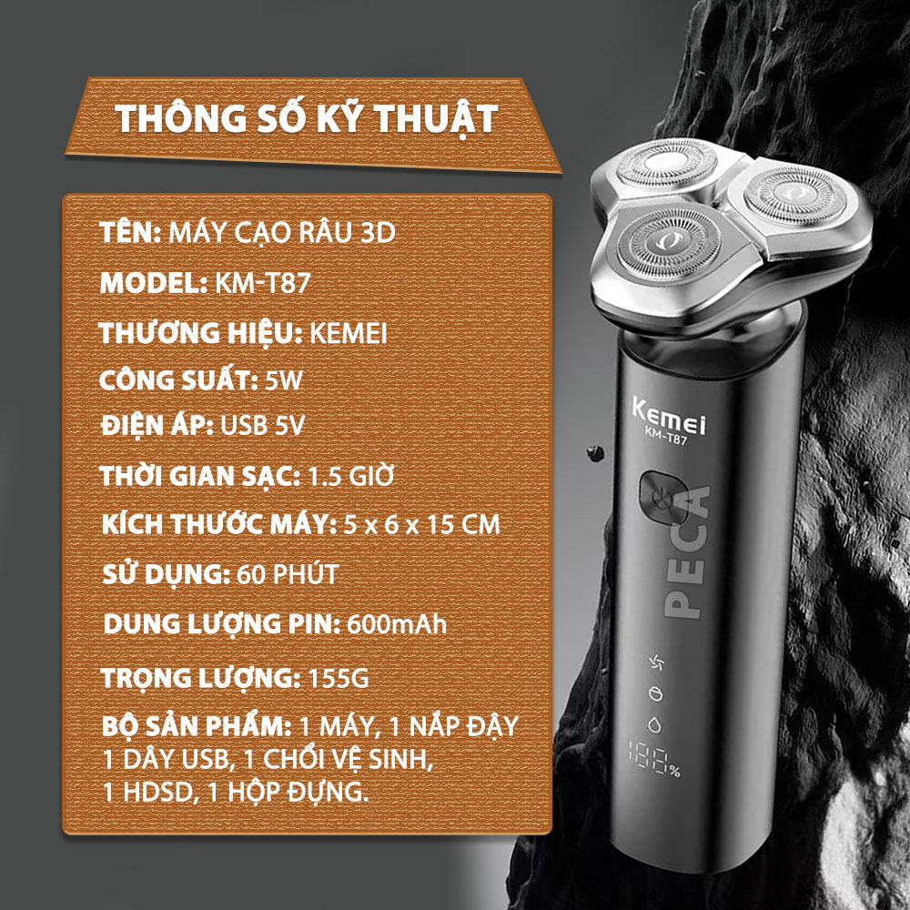 Thông số kỹ thuật máy cạo râu Kemei KM-T87: