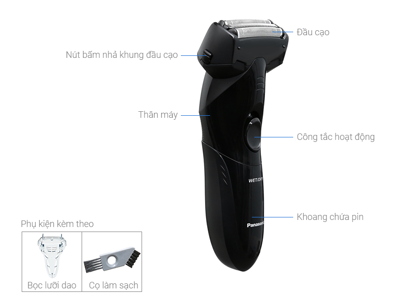 THÔNG TIN SẢN PHẨM: Thương hiệu: Panasonic Model: ES-SL10-K401 - Kiểu cạo: Cạo khôCạo ướt - Lưỡi cạo: 3 lưỡi cạo - Vùng sử dụng: + Cạo lông + Cạo râu + Tỉa chân mày