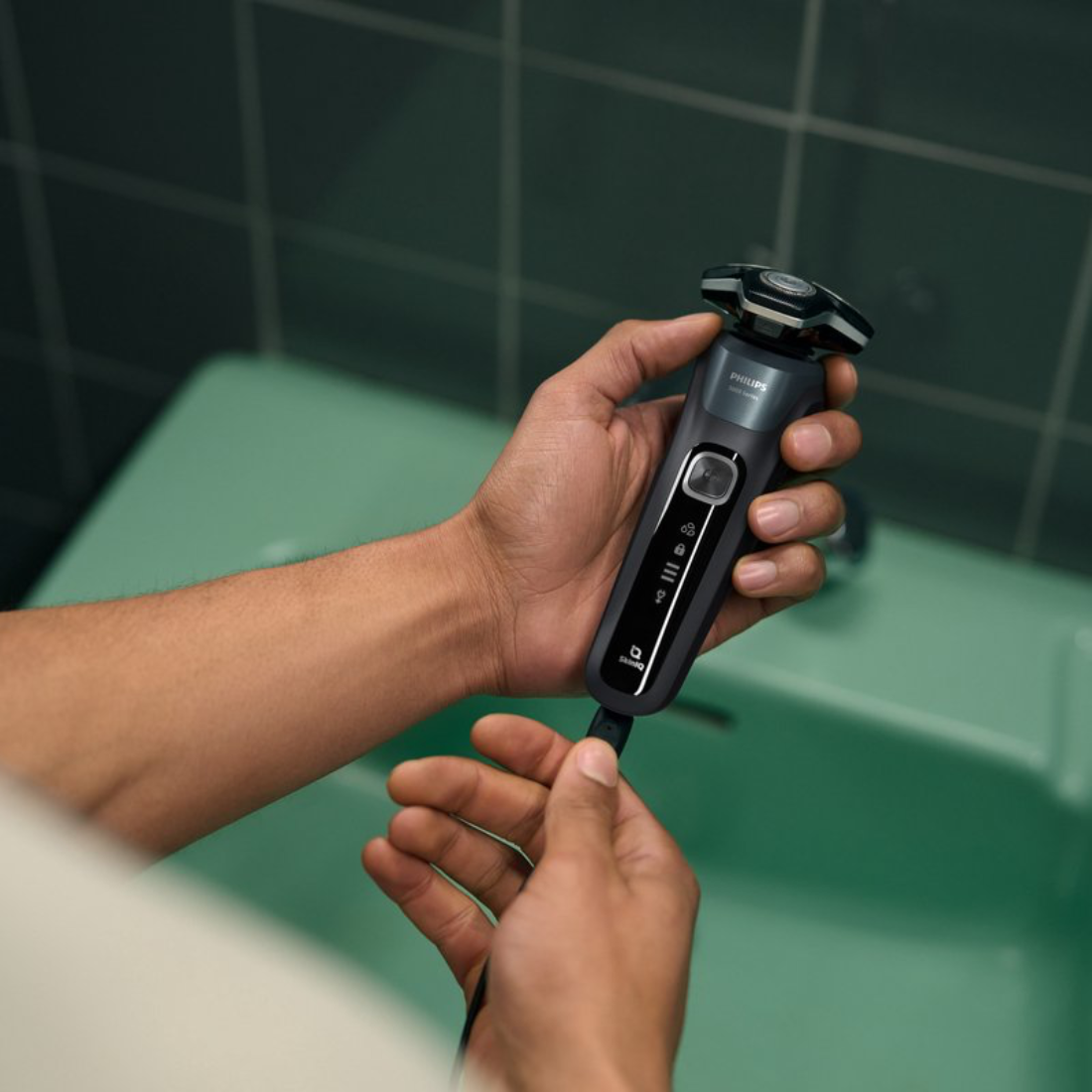 - Cạo râu mạnh mẽ, nhẹ nhàng với làn da Máy cạo râu Philips Series 5000 mang đến khả năng cạo râu mạnh mẽ, cắt được nhiều râu hơn mỗi lần cạo*. Được trang bị công nghệ SkinIQ tiên tiến, máy cạo râu có thể cảm nhận và điều chỉnh theo mật độ râu, mang lại cảm giác thoải mái hơn cho làn da – Hiệu suất mạnh mẽ trong mọi lần cạo: Với tốc độ lên đến 90.000 lần cắt mỗi phút, lưỡi dao SteelPrecision cạo sát, cắt được nhiều lông hơn trên mỗi lần cạo. 45 lưỡi dao hiệu suất cao có khả năng tự mài và được sản xuất tại Châu Âu. – Điều chỉnh theo râu của bạn để cạo râu dễ dàng Cảm biến râu thông minh có thể đọc mật độ râu 250 lần mỗi giây. Công nghệ này tự động điều chỉnh lực cắt để cạo râu nhẹ nhàng và êm ái. – Đầu linh hoạt theo đường nét khuôn mặt của bạn Đầu cạo linh hoạt xoay 360° theo đường nét khuôn mặt. Trải nghiệm tiếp xúc da tối ưu cho một lần cạo râu kỹ lưỡng và thoải mái. – Được thiết kế để có độ chính xác và hiệu quả cắt Hình dạng mới của đầu cạo được thiết kế để đạt độ chính xác cao. Bề mặt được cải tiến với các rãnh dẫn hướng râu, được thiết kế để di chuyển râu vào vị trí cắt hiệu quả. – Làm sạch chỉ trong 1 phút để cạo râu hợp vệ sinh Viên làm sạch mạnh mẽ giúp làm sạch và bôi trơn máy cạo râu của bạn chỉ trong 1 phút, duy trì hiệu suất tối ưu trong thời gian dài hơn. Viên làm sạch hiệu quả gấp 10 lần so với việc vệ sinh bằng nước. Đây là trạm làm sạch nhỏ nhất thế giới, vì vậy bạn có thể dễ dàng cất giữ và sử dụng ở bất cứ đâu. – Cạo râu ướt, khô: Điều chỉnh thói quen cạo râu phù hợp với nhu cầu của bạn. Với chế độ Ướt và Khô, bạn có thể cạo khô thoải mái hoặc cạo ướt sảng khoái. Bạn có thể cạo râu bằng gel hoặc bọt – Tông đơ tỉa chính xác tích hợp trong tay cầm Hoàn thiện diện mạo của bạn với đầu tỉa chính xác dạng bật lên của máy cạo râu. Được tích hợp vào thân máy, đây là giải pháp hoàn hảo để chăm sóc ria mép và tỉa tóc mai. – Thời gian sạc 1 giờ và sạc nhanh 5 phút Sạc đầy máy cạo râu chỉ trong 1 giờ với pin lithium-ion mạnh mẽ và tiết kiệm năng lượng. Bạn đang vội? Cắm điện máy cạo râu trong 5 phút và có đủ năng lượng cho một lần cạo râu hoàn chỉnh.