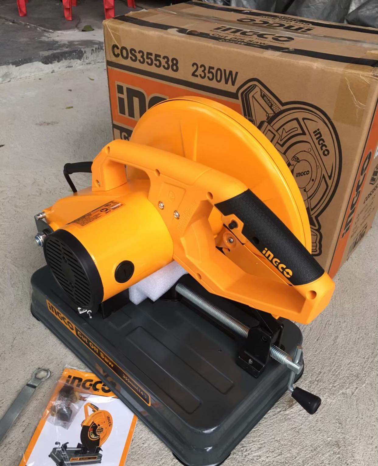 Máy cắt sắt INGCO giá rẻ nhưng chất lượng chuẩn Châu Âu sử dụng động cơ hoạt động mạnh công suất lên đến ~ 2400W cùng lưỡi cắt rộng 355 x 25.4 x 3mm và sắc bén linh hoạt đem đến khả năng cắt các khối sắt đa dạng: ống tròn, sắt vuông, sắt hình chữ nhật… mạnh mẽ, nhanh chóng và hiệu quả. Ngoài ra chiếc máy cắt sắt COS35538 do INGCO sản xuất vận hành luôn ổn định, thiết kế của máy thì chắc chắn đem đến sự yên tâm tới người dùng khi sử dụng.
