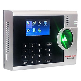 Máy chấm công vân tay và thẻ cảm ứng Ronald Jack RJ4200 sở hữu gam màu đen tuyền viền bạc sang trọng phù hợp với nhiều không gian văn phòng. Thiết bị có khả năng quản lý 4200 dấu vân tay + 4200 thẻ cảm ứng đáp ứng nhu cầu chấm công của các doanh nghiệp, văn phòng, xí nghiệp vừa và lớn có số lượng nhân viên nhiều (50-300 người).
