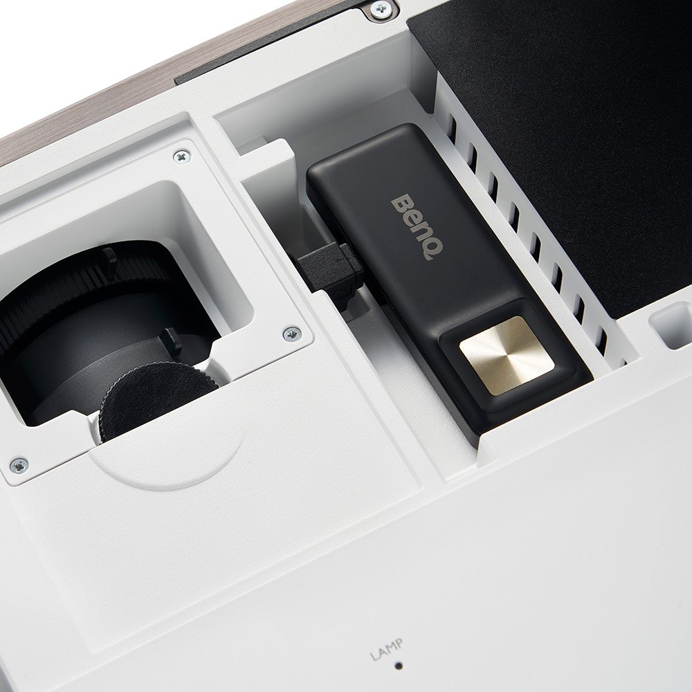 - Cân chỉnh Keystone dọc: Giúp bạn dễ dàng điều chỉnh hình ảnh vuông vắn dù đặt máy chiếu ở bất kỳ vị trí nào. Review Máy chiếu BenQ W2700i chi tiết Máy chiếu BenQ W2700i là lựa chọn tuyệt vời cho trải nghiệm rạp hát tại nhà với chất lượng 4K HDR và tích hợp Android TV, cho phép bạn điều khiển trực tiếp trên máy chiếu mà không cần thiết bị phụ trợ. Được đánh giá cao từ thương hiệu uy tín BenQ, đây là một sản phẩm tiếp nối thành công của dòng W2700. Với W2700i, BenQ tiếp tục mang đến người dùng trải nghiệm xem phim tại nhà hoàn hảo, đáng giá để đầu tư. Thiết kế Máy chiếu BenQ W2700i không chỉ nổi bật với thiết kế hiện đại mà còn sở hữu các đường nét bo tròn tinh tế, với lớp vỏ được hoàn thiện từ nhựa cao cấp, tạo nên vẻ bóng bẩy đẹp mắt với hai tone màu vàng đồng và trắng, phù hợp với nhiều không gian nội thất khác nhau. Với kích thước gọn nhẹ và các thông số chỉ là 380 x 127 x 263mm cùng trọng lượng chỉ 4.2kg, máy chiếu dễ dàng đặt trên sàn nhà, bàn làm việc, kệ sách hoặc treo lên tường một cách tiện lợi, tạo điều kiện thuận lợi cho việc thưởng thức phim ảnh tốt hơn. Đặc biệt, việc tích hợp các khe tản nhiệt ở hai mặt bên giúp máy chiếu hoạt động ổn định và duy trì khả năng trình chiếu lâu dài mà không lo ngại về quá nhiệt. Màu sắc chân thực Với không gian màu rộng lớn lên đến 95% DCI-P3 và 100% Rec.709, BenQ W2700i tự hào là một thiết bị với công nghệ CinematicColor, đảm bảo màu sắc chính xác như mong đợi, bảo toàn tầm nhìn ban đầu của mỗi khung hình theo ý muốn của đạo diễn. Công nghệ CinematicColor đi kèm với việc hiệu chỉnh tinh chỉnh đảm bảo độ chính xác của màu sắc với 100% Rec.709 và chỉ số Delta E<3, cùng bảng màu DCI-P3 được tối ưu hóa, mang đến cho người dùng trải nghiệm trung thực và sống động như trong các bộ phim chuyên nghiệp Độ phân giải 4K UHD, công nghệ HDR-PRO . Máy chiếu BenQ W2700i với độ phân giải 4K UHD 3840x2160 và 8,3 triệu điểm ảnh riêng biệt cho mỗi khung hình, sử dụng công nghệ DLP đơn DMD 0,47” thế hệ mới, mang lại độ rõ nét đáng kinh ngạc đến từng chi tiết nhỏ. Với độ phân giải 4K UHD (Ultra-HD) 3840x2160, máy chiếu này mang lại một trải nghiệm tuyệt vời gấp bốn lần số điểm ảnh so với 1080p FHD (full HD), giảm thiểu hiện tượng mờ mịn và hiển thị video sắc nét, rõ ràng hơn bao giờ hết. Ánh xạ nâng cao Nhờ vào công nghệ Dynamic Iris và Dynamic Black, ánh xạ nâng cao trên Máy chiếu BenQ W2700i đã được tối ưu hóa đặc biệt cho việc tạo ra một không gian rạp chiếu phim tại gia tuyệt vời. Công nghệ này giúp tăng cường độ tương phản, đảm bảo rằng mọi chi tiết trong cảnh tối đều được bảo toàn và tái tạo một cách chân thực nhất. Tối ưu hóa độ tương phản Tối ưu hóa độ sáng HDR giúp duy trì độ tương phản cao lý tưởng, phù hợp với các kích thước hình ảnh và các cấp độ tăng màn hình khác nhau thường được sử dụng trong không gian rạp hát tại nhà. Âm thanh sống động Các loa ngăn 5Wx2 được nâng cấp với dải tần số rộng hơn cho âm trầm sâu và âm cao vút, công nghệ tăng cường âm thanh của BenQ cũng cung cấp các thuật toán EQ độc quyền cho chất lượng âm thanh trong trẻo và tự nhiên. Tăng cường chuyển động Chèn 36 khung hình được nội suy giữa các chuỗi để tạo ra các video 60 khung hình mỗi giây liền mạch, sống động, Motion Enhancer loại bỏ hình ảnh giật lag, phát lại giật hình và bóng mờ. Điều chỉnh thu phóng tích hợp Hệ thống thu phóng điều chỉnh các thay đổi của gương trong tiêu cự trong khi vẫn duy trì tỷ lệ thu phóng nhất quán một cách tự động. Hình ảnh giữ được tiêu điểm trực quan hoàn hảo từ góc này sang góc khác, bất kể kích thước màn hình khác nhau, cho độ rõ nét với độ chính xác cao trên toàn bộ hình ảnh. Dịch chuyển ống kính dọc Máy chiếu cung cấp dịch chuyển ống kính dọc +10% để cung cấp hình ảnh có cạnh thẳng hoàn hảo mà không làm giảm độ phân giải, cho phép các tùy chọn cài đặt và vị trí linh hoạt hơn. Vòm hình dọc tự động Auto vertical keystone được trang bị cho máy chiếu BenQ W2700i để tự động điều chỉnh cho hình ảnh bình phương, bạn có thể dễ dàng chiếu hình ảnh được căn chỉnh từ nhiều góc độ khác nhau. Khoảng cách chiếu Thu phóng 1,3 lần tối đa hóa không gian có sẵn với nhiều khoảng cách chiếu để người dùng giải trí trên màn hình lớn mà không cần cài đặt phức tạp. Kết nối đa dạng Cổng USB Type-A 3.0 để truyền dữ liệu với tốc độ lên tới 5 Gbit/s, nhanh hơn khoảng 10 lần so với chuẩn USB 2.0. USB Media Reader cho khả năng chia sẻ mà không cần cáp từ đĩa di động với đường truyền tốc độ cao. Hỗ trợ nhiều loại tệp bao gồm video, âm thanh, hình ảnh. Thông số kỹ thuật của máy chiếu BenQ W2700i