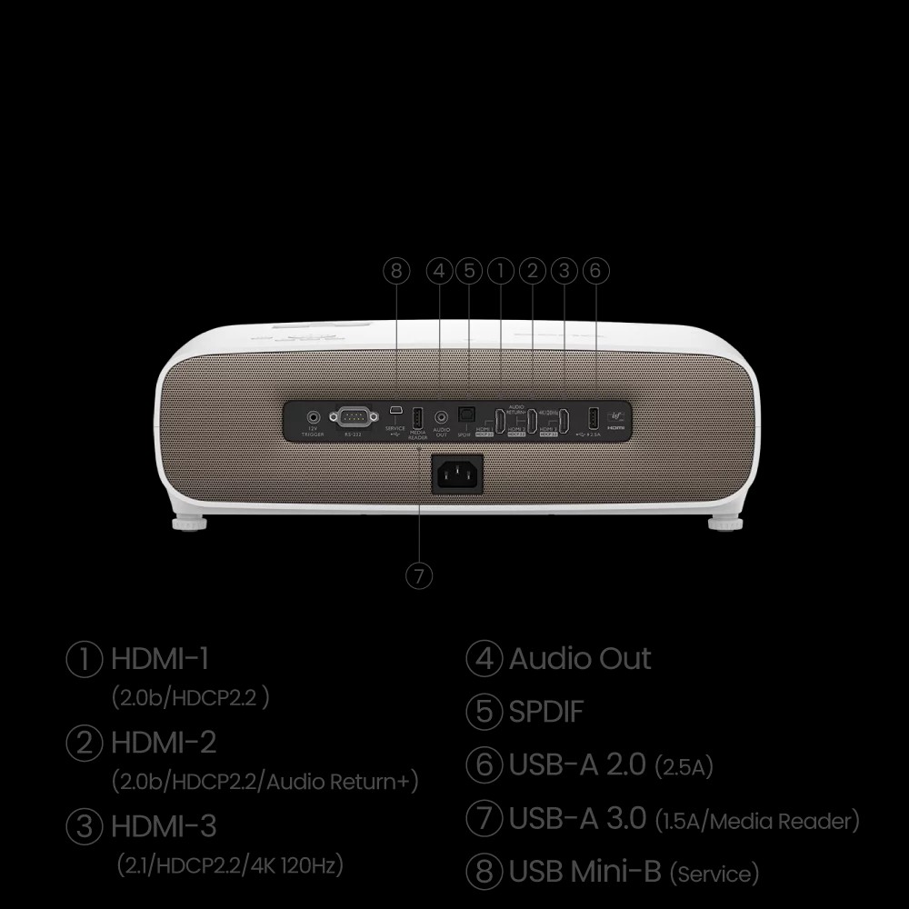 - Hệ thống loa tích hợp 5W: Cung cấp âm thanh rõ ràng, mạnh mẽ, tăng thêm sự sống động cho trải nghiệm giải trí của bạn. Review tính năng máy chiếu BenQ W2710i Độ phân giải 4k 4K UHD với 8,3M điểm ảnh riêng biệt cung cấp độ phân giải Full HD 1080p gấp 4 lần cho độ rõ nét đến từng chi tiết mà không bị mờ điểm ảnh, sử dụng công nghệ DMD đơn 0,47” thế hệ tiếp theo để có kiểu dáng đẹp, nhỏ gọn. Trải nghiệm hình ảnh điện ảnh sáng tạo và giải trí đắm chìm với máy chiếu 4K gia đình BenQ mới. Busk với màu sắc chân thực và các chi tiết sáng và tối được hỗ trợ bởi công nghệ CinematicColor và HDR-PRO trong rạp chiếu phim tại nhà của bạn để mang lại trải nghiệm chân thực, mãn nhãn nhất. Tăng cường độ tương phản cục bộ hàng đầu Chia hình ảnh thành hơn 1.000 vùng, Local Contrast Enhancer phân tích độ sáng của từng phân đoạn và điều chỉnh gamma một cách độc lập để có độ phân giải chi tiết tối và sáng cao hơn cũng như độ sâu hình ảnh 4K phong phú hơn. Sử dụng công nghệ Active Iris và Dynamic Black TM Thông qua việc sử dụng công nghệ Active Iris và Dynamic Black TM , Bản đồ tông màu nâng cao được tối ưu hóa cho rạp chiếu phim của BenQ sẽ tăng độ tương phản để bảo toàn các chi tiết trong vùng tối của hình ảnh được chiếu. Màu sắc chân thực Chỉ có màu sắc chân thực mới gợi lên cảm giác buồn bã, vui vẻ, lãng mạn và hồi hộp. Với không gian màu 95% DCI-P3 siêu rộng CinematicColor và 100% Rec.709, máy chiếu 4K tại nhà của BenQ mang đến màu sắc chính xác để bảo toàn tầm nhìn của đạo diễn một cách hoàn hảo. Âm thanh sống động Loa dạng khoang treVolo 5Wx2 của máy chiếu W2710i 4K sử dụng khoa học âm thanh và âm thanh tâm lý để tạo ra âm trầm sâu và âm cao cao vút, đồng thời cung cấp thuật toán EQ độc quyền được các hãng phim nổi tiếng sử dụng để mang lại chất lượng âm thanh rõ ràng và gợi cảm. Bộ tăng cường chuyển động Chèn 36 khung hình nội suy giữa các chuỗi để tạo ra video 60 khung hình mỗi giây liền mạch, sống động, Motion Enhancer loại bỏ hình ảnh bị lag, phát lại giật hình và bóng mờ. Cài đặt linh hoạt Dịch chuyển ống kính dọc: Máy chiếu W2710i 4K mang đến trải nghiệm điện ảnh tuyệt vời trong mọi không gian với độ dịch chuyển ống kính dọc ±10%, khoảng cách chiếu ngắn mạnh mẽ và khả năng thu phóng lớn 1,3 lần để cài đặt dễ dàng. Căn chỉnh keystone 2D: Chống lại hiệu ứng hình thang từ vị trí đặt máy chiếu lệch tâm chẳng hạn như mặt bàn, tính năng keystone ngang theo chiều dọc và thủ công tự động cung cấp hình ảnh bình phương chuyên nghiệp từ nhiều vị trí khác nhau. Phù hợp mọi không gian Thu phóng 1,3 lần tối đa hóa không gian sẵn có với nhiều khoảng cách chiếu để giải trí trên màn hình lớn mà không gặp rắc rối khi cài đặt phức tạp. Cổng kết nối đa dạng Máy chiếu W2710i 4K kết nối bạn với mọi loại hình giải trí bằng các cổng phổ thông, bao gồm ba cổng HDMI 2.0b (HDCP 2.2)*, SPDIF và eARC cho kênh 7.1 và đường truyền âm thanh Dolby Atmos, truyền tín hiệu âm thanh gốc có độ phân giải đầy đủ đến âm thanh của bạn hệ thống thông qua một cáp HDMI. Thông số kỹ thuật máy chiếu BenQ W2710i