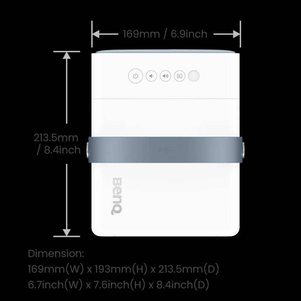 - Kết nối đa dạng: Hỗ trợ HDMI, USB Type-C, Bluetooth, Wi-Fi. Đánh giá máy chiếu BenQ GP100 chi tiết Độ phân giải Full HD Luôn giải trí với độ phân giải 1080p tuyệt vời trên GP100. Với chế độ chơi trò chơi phù hợp được phát hiện và chuyển đổi thông minh, bạn luôn xem phim hoặc chơi trò chơi ở đầu ra SDR với màu sắc sống động chính xác và các trò chơi HDR có độ tương phản và chi tiết tối tuyệt vời. Âm thanh sống động Với hệ thống âm thanh 2.1 kênh 20W tích hợp, máy chiếu GP100 nhỏ gọn cung cấp đầy đủ các tần số, mang đến âm thanh tầm thấp đến trung bình phong phú và sống động. Cảm nhận những khung cảnh đầy cảm hứng trong phim và trò chơi cũng như bị cuốn hút bởi trải nghiệm âm thanh. Tự động lấy nét Tự động lấy nét thông minh luôn có được hình ảnh ngay sau vài giây mà không hiển thị bất kỳ kiểu lấy nét khó chịu nào. Keystone 2D tự động Tự động điều chỉnh cho màn hình có hệ số dạng vuông để bạn có thể dễ dàng chiếu các hình ảnh được căn chỉnh từ nhiều góc khác nhau chỉ trong ba giây. Thu phóng kỹ thuật số Với tính năng thu phóng kỹ thuật số, bạn có thể dễ dàng thu nhỏ kích thước của hình ảnh chiếu để vừa vặn hoàn hảo ở bất cứ đâu bạn muốn mà không cần di chuyển máy chiếu. Tự động bảo vệ mắt Khi có người hoặc vật thể xuất hiện trước máy chiếu, nó sẽ làm mờ ánh sáng để bảo vệ mắt người, bắt đầu bằng lời nhắc bật lên, sau đó là giảm độ sáng 60%. Kết nối Wifi Phát nhạc trên cùng một Wi-Fi với điện thoại di động của bạn và tận hưởng cảm xúc theo cách bạn yêu thích bằng cách chuyển sang Chế độ loa không dây. Âm nhạc tuyệt vời, cuộc sống sống động. Hệ điều hành Android TV Tất cả nội dung bạn yêu thích, chính xác theo cách thức và thời điểm bạn muốn được tải sẵn GP100 và được hỗ trợ bởi dongle Android TV. Máy chiếu di động BenQ mang đến cho bạn tất cả các chương trình truyền hình và phim yêu thích trên màn hình lớn, thậm chí còn chấp nhận lệnh tìm kiếm bằng giọng nói. Điều tuyệt vời nhất là máy chiếu di động BenQ cực kỳ dễ sử dụng, phát trực tuyến bất cứ lúc nào bạn yêu thích, chỉ lớn hơn và tốt hơn mà không gặp rắc rối khi thiết lập phức tạp. Cổng kết nối đa dạng GP100 kết nối bạn với mọi loại hình giải trí với các cổng phổ biến bao gồm USB-C (Chế độ thay thế DP, đầu vào/đầu ra PD), HDMI ARC (HDCP 2.3), đầu đọc phương tiện USB-A 2.0 (0,5A) và đầu ra âm thanh. Thông số kỹ thuật máy chiếu BenQ GP100