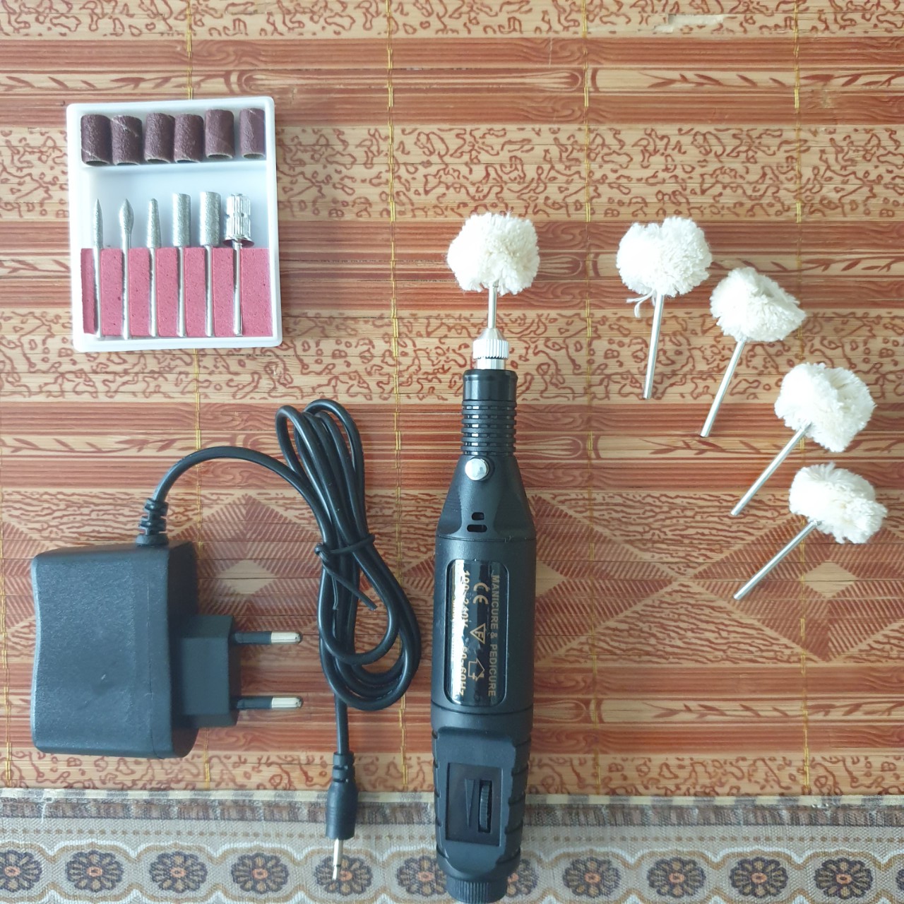 Mua tại Tiktokmáy đánh bóng mini 18 chi tiết 5 đầu lông cừa đánh bóng và mũi khắc giáp tròn Bộ máy đánh bóng mini gồm: 1 máy, 13 chi tiết khắc, 5 đầu bông đánh bóng