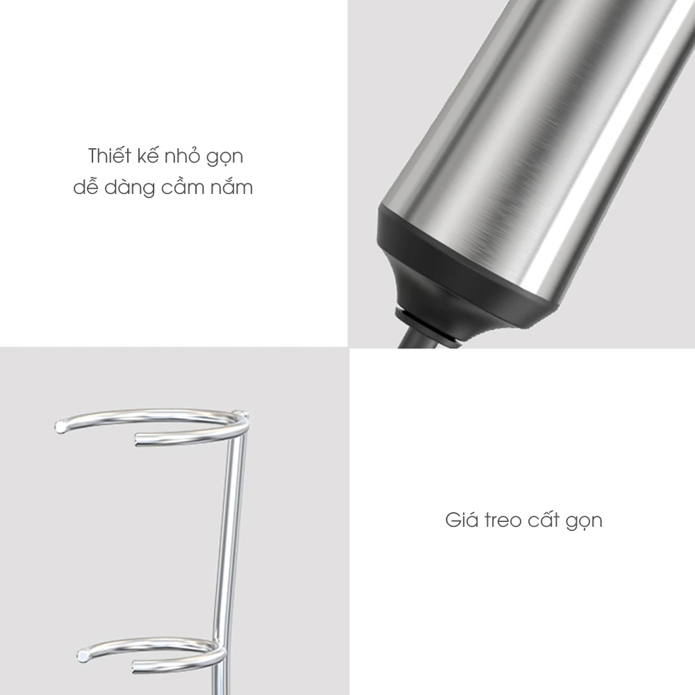 · Công suất 10W, hoạt động mạnh mẽ, giúp đánh bọt sữa, bọt cà phê và đánh trứng nhanh chóng.