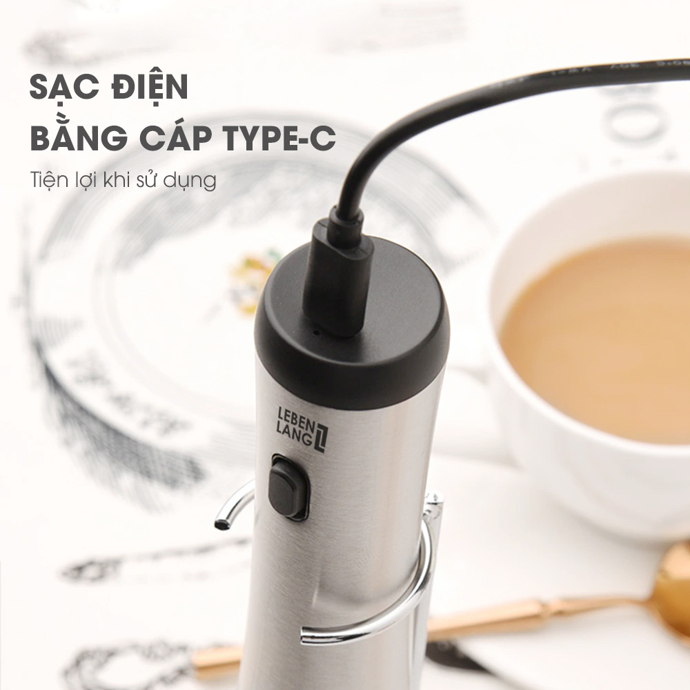 Máy đánh bọt cafe cầm tay Lebenlang LBL4583, sạc điện tiện lợi, công suất 10W, hàng chính hãng - bảo hành 2 năm
